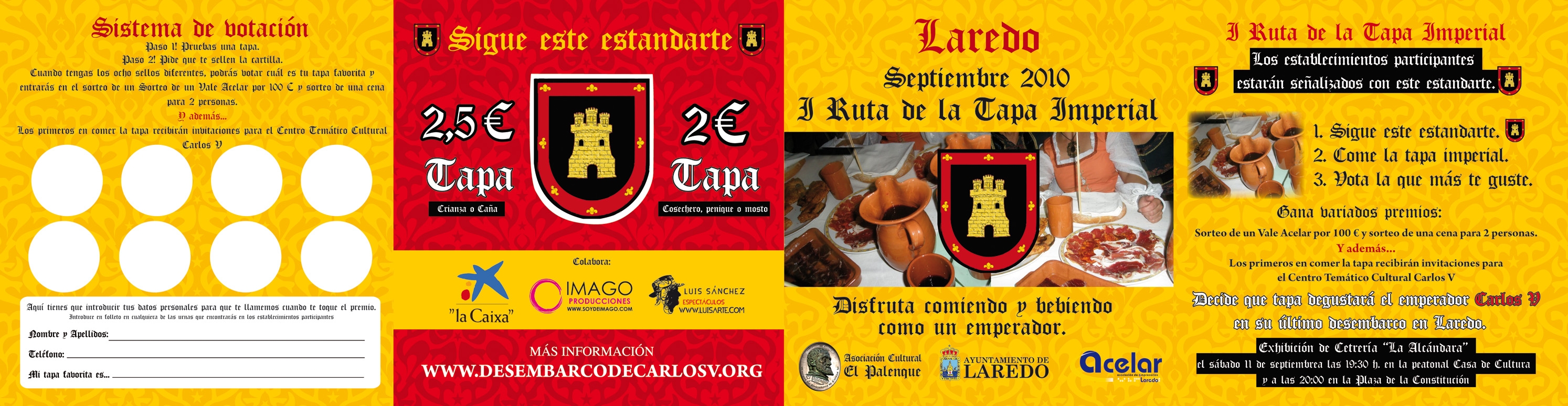 La I Ruta de la Tapa Imperial está organizada por la Asociación El Palenque, con el patrocinio del Ayuntamiento de Laredo y la Asociación de Empresarios y Comerciantes de Laredo. Cuenta con la colaboración de La Caixa, Imago Producciones, Luis Sánchez, Cetrería La Alcándara