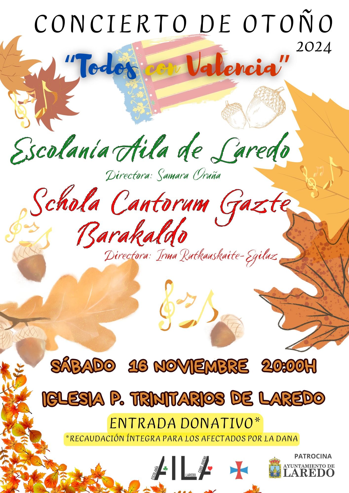 A las 20:00 h. en la Iglesia de los Padres Trinitarios, Concierto de Otoño 2024 “TODOS CON VALENCIA” a cargo de la Escolanía Aila de Laredo y de la Schola Cantorum Gazte de Barakaldo.