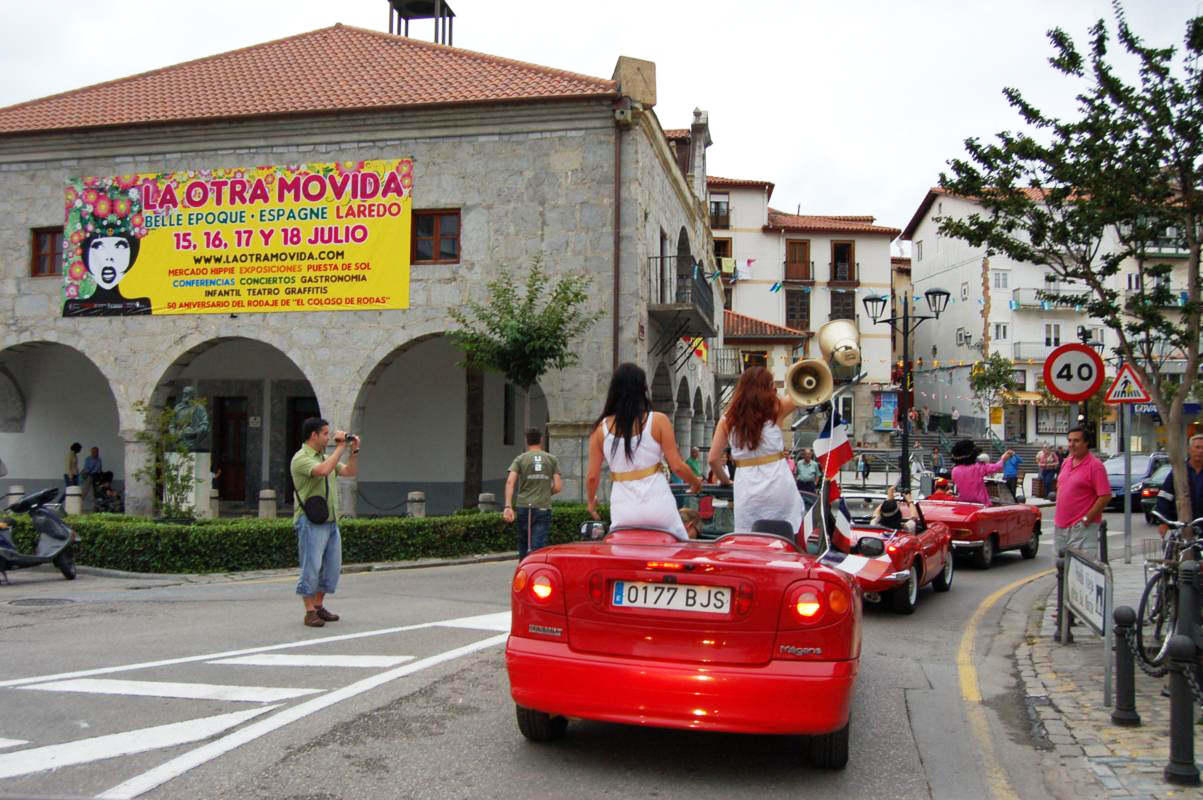 Ayer Miércoles se desarrolló con tremendo éxito el Pregón de Inauguración a cargo de tres coches de época que recorrían Laredo con personajes de “La Otra Movida” como Antuán de maestro de ceremonias y “turistas francesas” que animaban al pueblo de Laredo a disfrutar de los actos culturales y festivos que se van a desarrollar a partir de hoy.