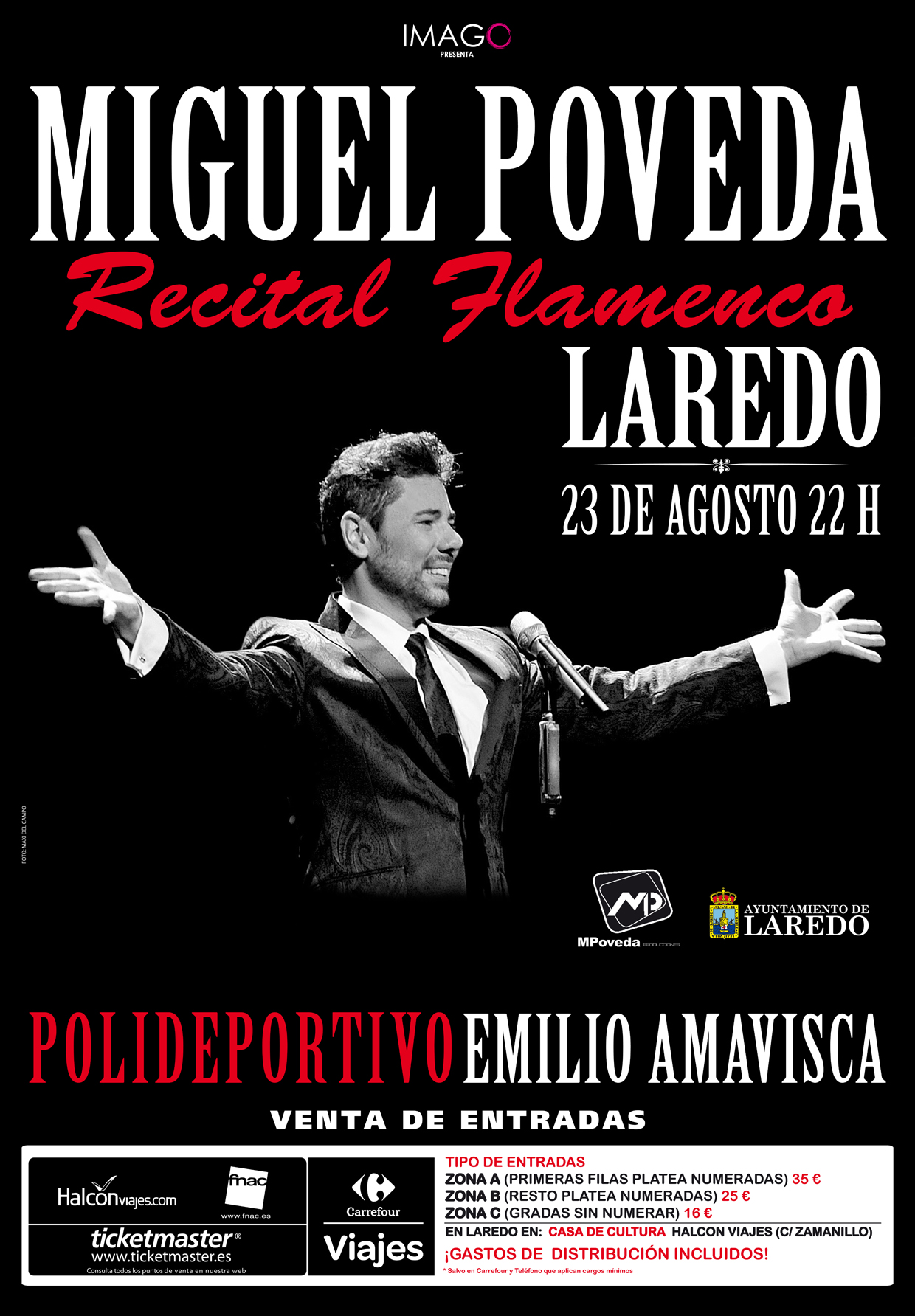 El próximo 23 de Agosto, a las 22 horas, Poveda estará en Laredo. Las entradas ya están a la venta en La Casa de Cultura de Laredo, en la Oficina de Halcón Viajes, y en tiendas FNAC y Carrefour Viajes. En Internet podrán adquirirse a través de la web de www.ticketmaster.com. El precio de las mismas es de: