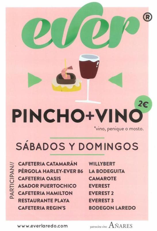 Este fin de semana, 24 y 25 de Octubre, un total de 14 establecimientos de hostelería de la ZONA EVER DE LAREDO, ofrecen una buena oferta de pinchos + vino, penique o mosto, a un precio de 2 €uros.
