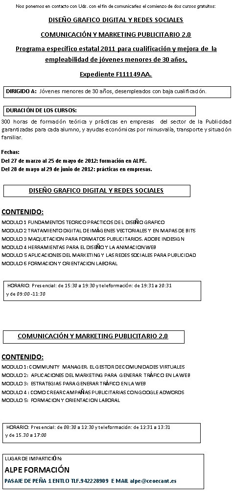 Curso gratuito julio-2012, Torrelavega para autónomos y desempleados: DISEÑO DE PAGINAS WEB