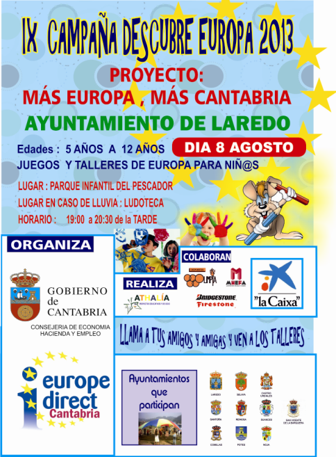 IX CAMPAŅA DESCUBRE EUROPA - TALLERES PARA NIŅ@S EL 8 DE AGOSTO PARQUE INFANTIL DEL PESCADOR DE 19:00H A 20:30H.