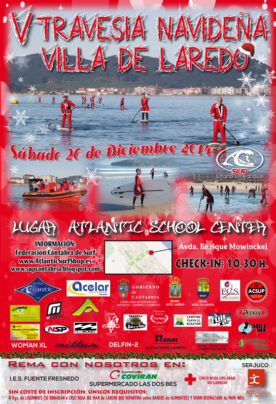 La V Travesía Navideña Villa de Laredo tendrá lugar el sábado 20 de diciembre en la playa Salvé. Clásico del stand up paddle cántabro, la actividad tendrá inscripción gratuita, aunque presentará dos habituales requisitos para participar: