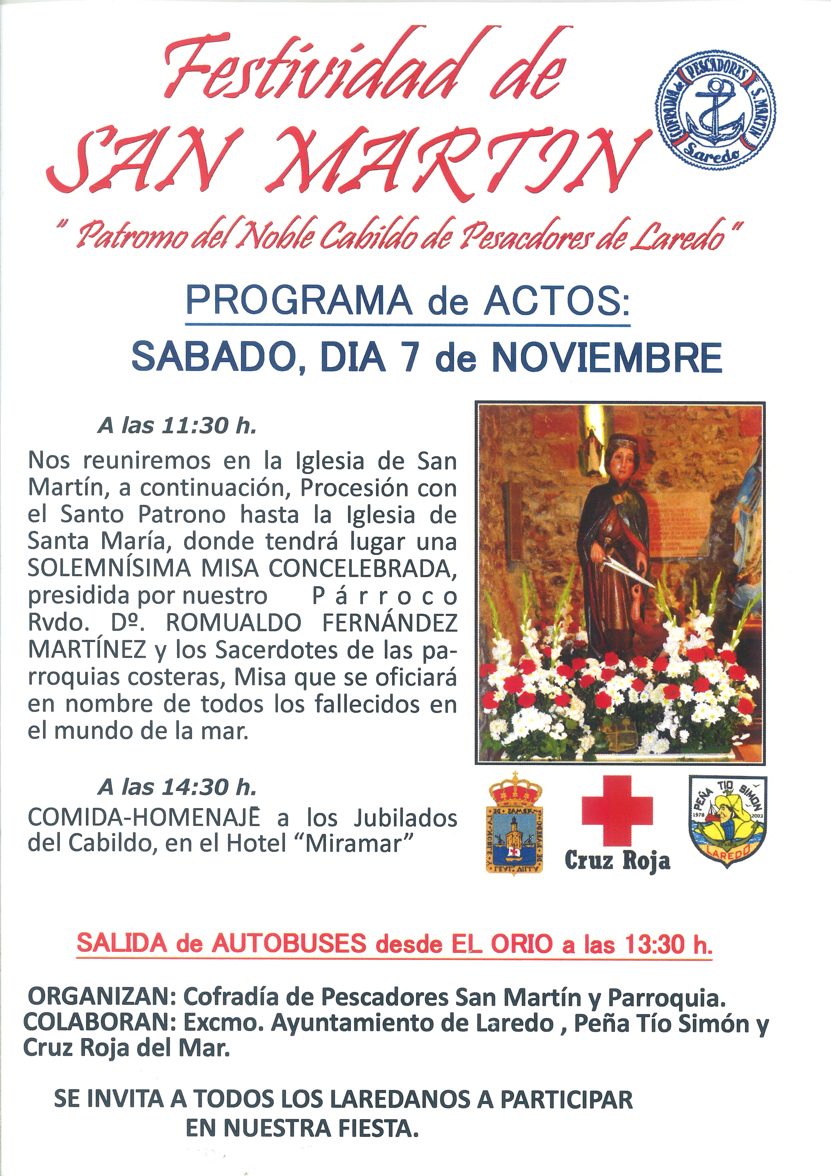 Los organizadores y colaboradores: Cofradía de Pescadores de San Martín de Laredo, Parroquia de Santa María de la Asunción de Laredo, Excmo. Ayuntamiento de Laredo, Peña Tío Simón y Cruz Roja del Mar invitan a todos a participar en esta tradicional fiesta de tanta raigambre en la villa laredana.