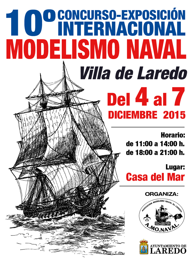 Del 4 al 7 de Diciembre 2015 tendrá lugar el “X Concurso-Exposición Internacional Modelismo Naval Villa de Laredo” que la Asociación de Modelismo Naval de Laredo (AMONAVAL) viene organizando desde hace diez años, con el patrocinio del Ayuntamiento de Laredo y, la colaboración de varias empresas.