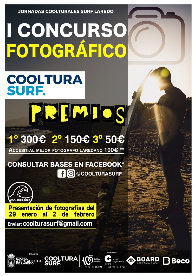 1er. concurso de fotografía dentro de las I Jornadas Coolturales de Surf Laredo, en el que pretender premias las fotografía que mejor ayuden a comprender y promocionar el surf y su estilo de vida en Laredo.