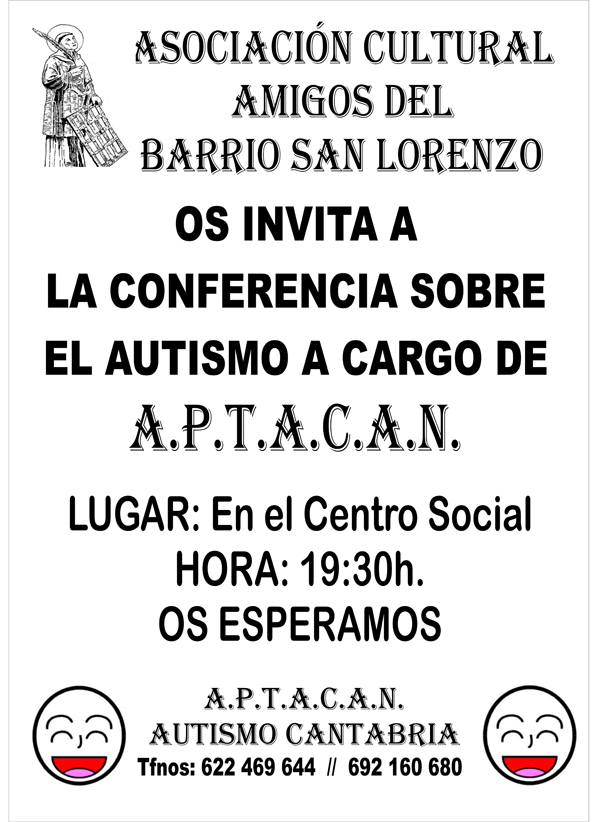 La Asociación de Amigos del Barrio San Lorenzo presenta una conferencia sobre el autismo a cargo de A.P.T.A.C.A.N. de Cantabria.