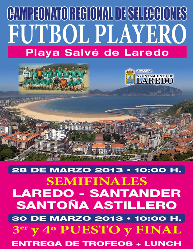 Campeonato regional de selecciones de Fútbol playero. Con la participación de los combinados de Laredo, Santander, Santoña y Astillero. El jueves día 28, a partir de 10:00 horas, tendrán lugar las semifinales, entre Laredo-Santander y Santoña-Astillero.