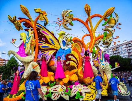 Cada último viernes de agosto, monumentales carrozas cubiertas en toda su superficie por miles de flores desfilan ante la sorprendida mirada de una multitud congregada para gozar de estas auténticas obras de arte. Baste señalar que cada una de las carrozas puede llevar alrededor de 100.000 flores, clavadas una a una sólo horas antes de salir a pista.