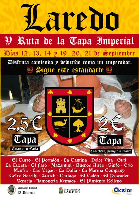 Durante el segundo y tercer fin de semana de septiembre varios establecimientos hosteleros de Laredo desarrollarán la V Ruta de la Tapa Imperial, dentro de los actos que se desarrollaran durante septiembre en conmemoración de la visita del Emperador Carlos V a Laredo.