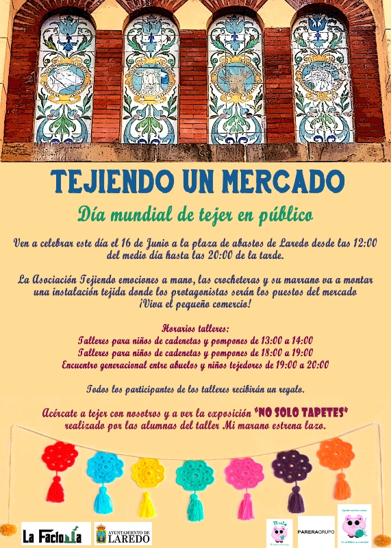 La asociación Tejiendo Emociones a Mano, Las Crocheteras y Su Marrano va a montar una instalación tejida donde los protagonistas serán los puestos del mercado.