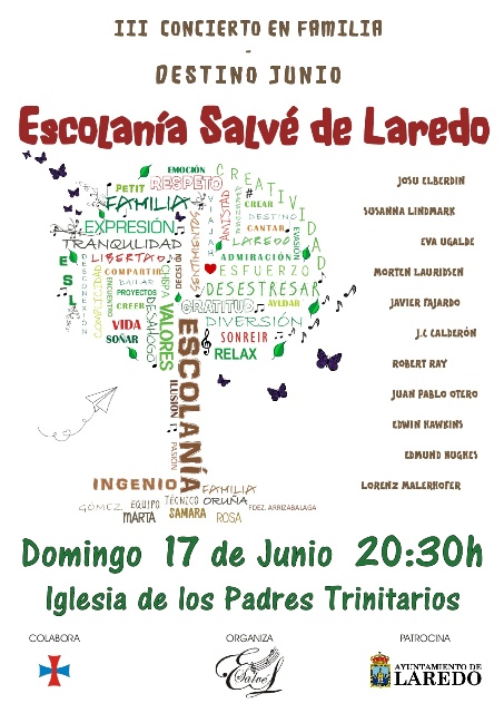 El Domingo día 17 de Junio de 2018 a las 20:30h en la Iglesia de los Padres Trinitarios de Laredo se celebra el concierto de fin de temporada, “Concierto en Familia”.