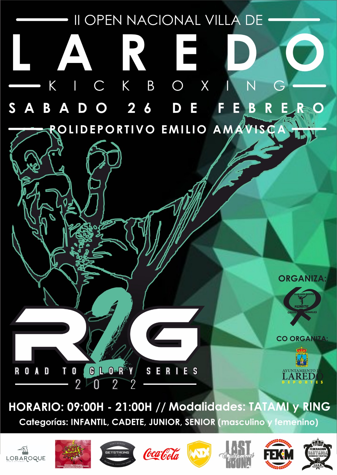 II Open Nacional Kick Boxing Villa de Laredo, sábado 26 de febrero en el Polideportivo Emilio Amavisca. Horario: de 09:00H a 21:00H. En las modalidades de Tatami y Ring. Categorías: Infantil, Cadete, Junior, Senior (masculino y femenino).