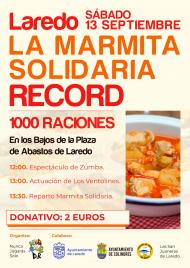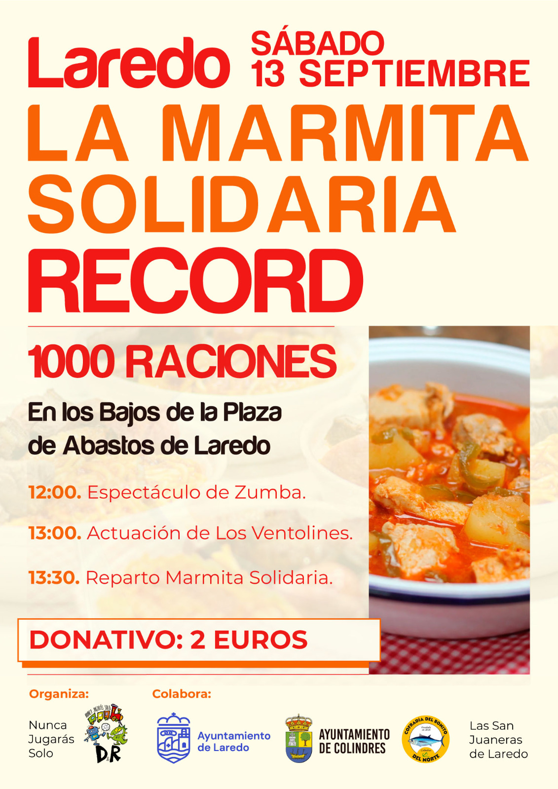 En los bajos de la Plaza de Abastos de Laredo, el sábado 13 de septiembre la Asociación Nunca Jugarás Solo elaborará una Marmita Solidaria Record, con nada menos que 1000 raciones.