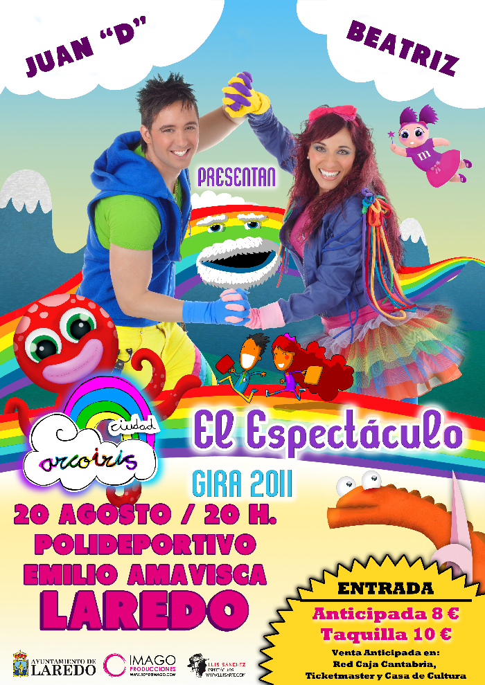 “Ciudad Arcoiris” es la ocasión perfecta para disfrutar en familia de un espectáculo divertido y enriquecedor. Las entradas se pueden adquirir en la Red de Cajeros de Caja Cantabria, en Ticketmaster.com y en la Casa de Cultura de Laredo, a un precio de 8 euros anticipada, y 10 en taquilla.