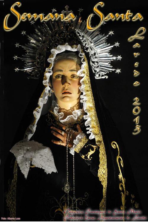 A continuación, PROCESIÓN DE LA SOLEDAD. Itinerario: Santa María - Revellón- Plaza de la Constitución- Casa de la Cultura (Alocución y Salve)- Zamanillo- Colegio San Vicente de Paúl.