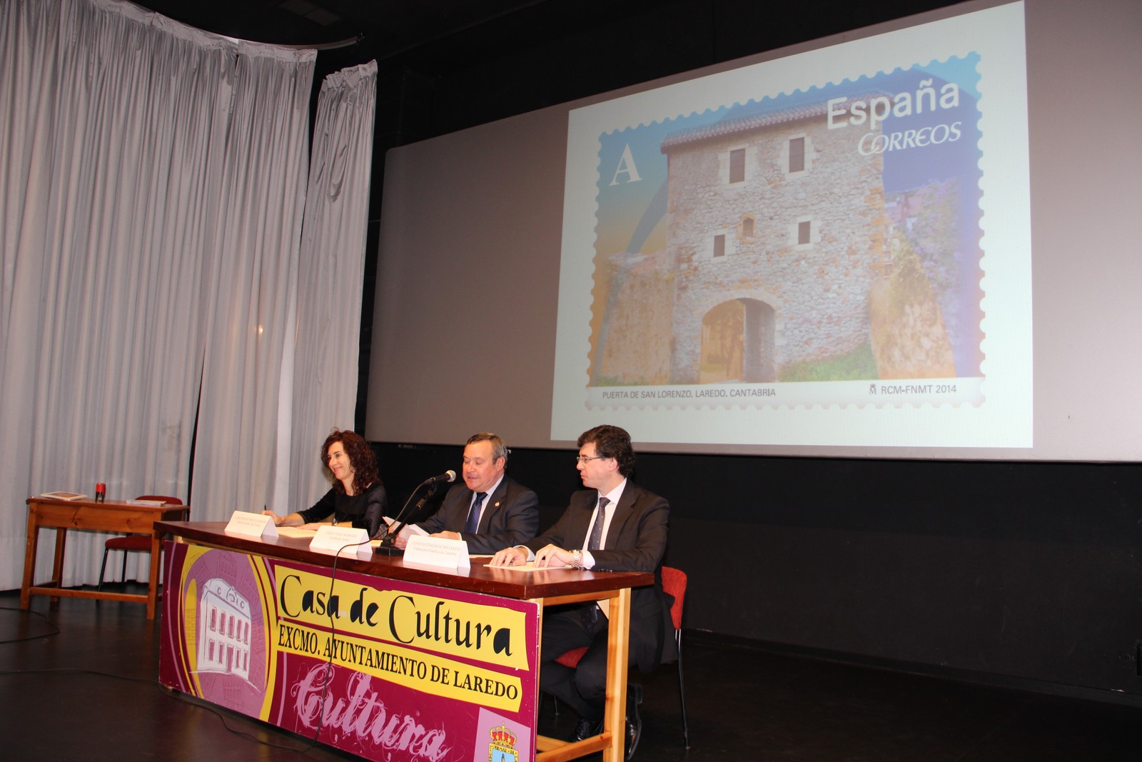 La Casa de Cultura de Laredo se ha llenado este mediodía para acoger la puesta de largo del primer sello de Correos basado en un motivo de la villa pejina. Se trata del timbre dedicado a la puerta de San Lorenzo, sita en la Puebla Vieja, impreso dentro de la serie “Arcos y Puertas Monumentales”. La estampilla, con la que Correos estrena el 2014 en cuanto a emisiones filatélicas se refiere, hace la número treinta de las emitidas con un tema de Cantabria desde que en 1850 se implantó el sello en España. Los asistentes han podido acceder al matasellado conmemorativo, que se expedirá en la oficina de Correos durante los próximos siete días.