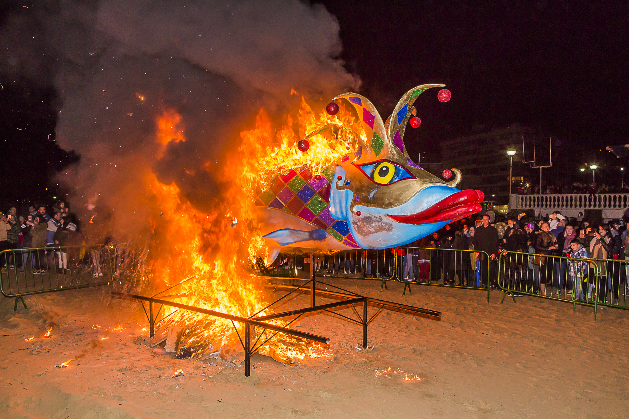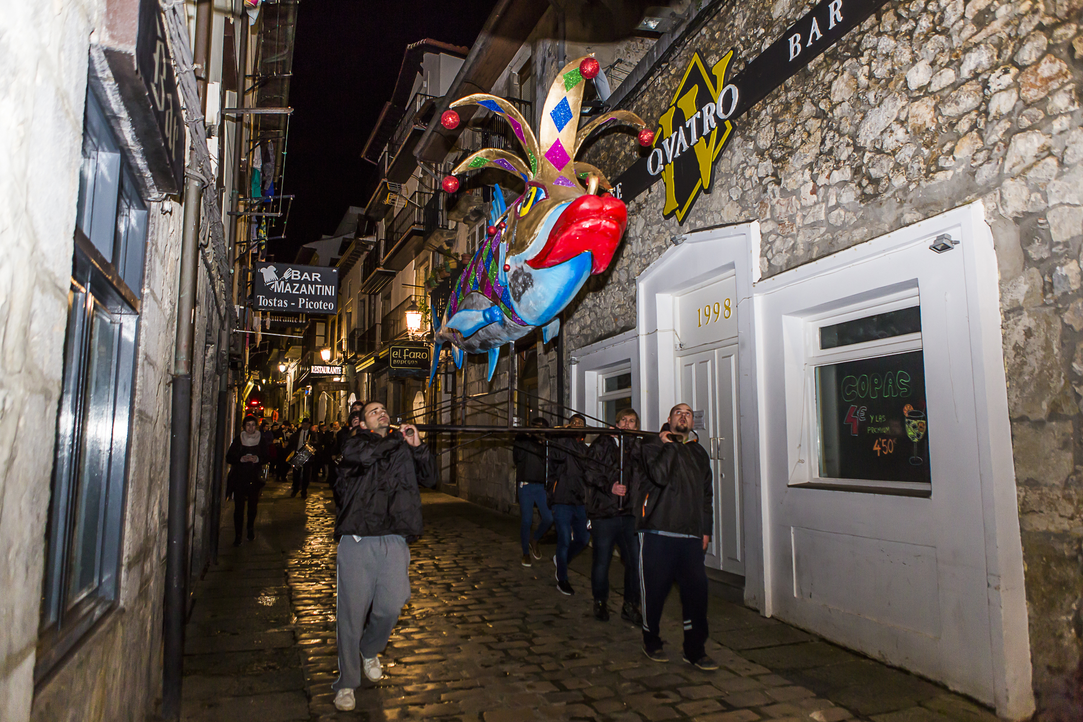La sardina del Carnaval de Laredo 2018 que,estaba disfrazada con un original y colorista disfraz de arlequín veneciano, fue portada a hombros y acompañada por un nutrido grupo de viudos y viudas, así como de la Peña Tío Simón por las calles Menéndez Pelayo, Cuesta de Lampiazo o del Infierno, Rúamayor, Plaza de la Constitución, López Seña hasta la playa Salvé, donde numeroso público la dio la bienvenida. Tras el recitado de la “Letanía a la difunta sardina” se encendió la pira cuyo fuego engulló a la sardina, poniendo el broche final al Carnaval de Laredo 2018una exhibición de fuegos artificiales.