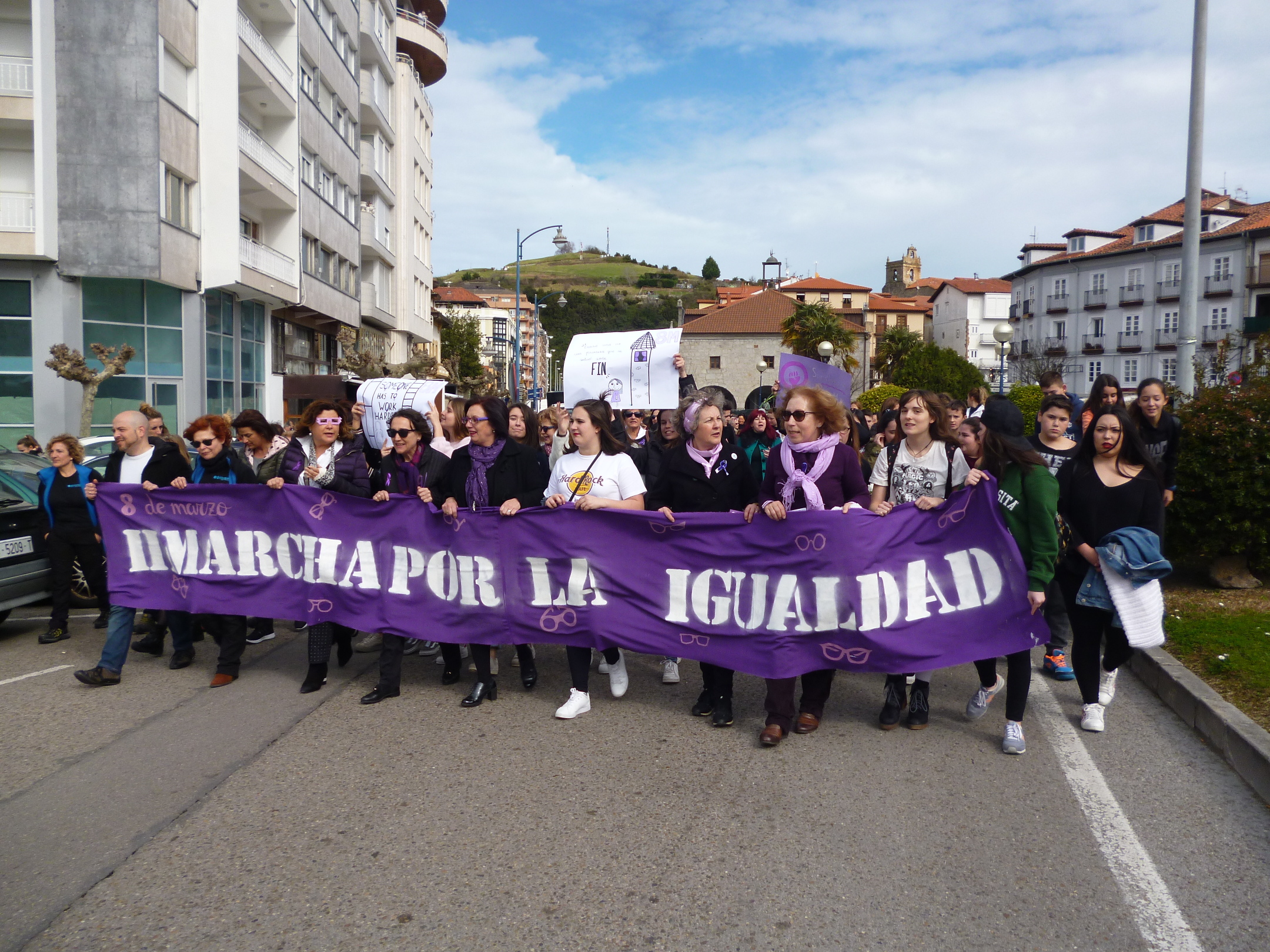 Una gran pancarta portada por Charo Losa Martínez, Concejal de Asuntos Sociales, Turismo y Festejos, concejales miembros de la Corporación Municipal del Ayuntamiento de Laredo, representantes de los ies Fuente Fresnedo y Bernardino de Escalante, de la vijja pejina,alumnas de los centros educativos del municipio y, el Presidente de la Asociación de Empresarios de Laredo (ACELAR) encabezaba laII Marcha por la Igualdad que ha estado formada por cientos de personas. El punto de salida ha sido el túnel de la Atalaya y, ha discurrido por la C/ Menéndez Pelayo, Plaza de Cachupin, Avda. de España hasta la sede del Ayuntamiento de Laredo, donde ha dado comienzo el acto institucional con la lectura por parte de Juan Ramón López Visitación, Alcalde de Laredo, de la declaración conmemorativa del Día Internacional de la Mujer: