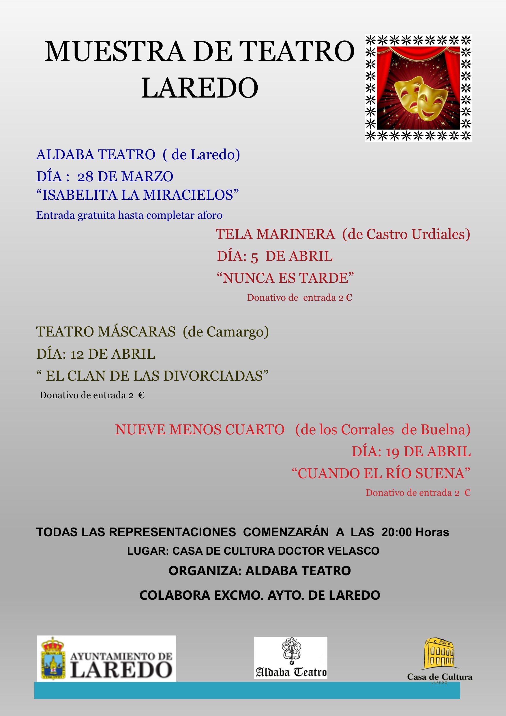 Esta tarde, 5 de abril, a las 20 h., la Compañía de Teatro "TEla Marinera", de Castro- Urdiales pondrá en escena "Nunca es Tarde".