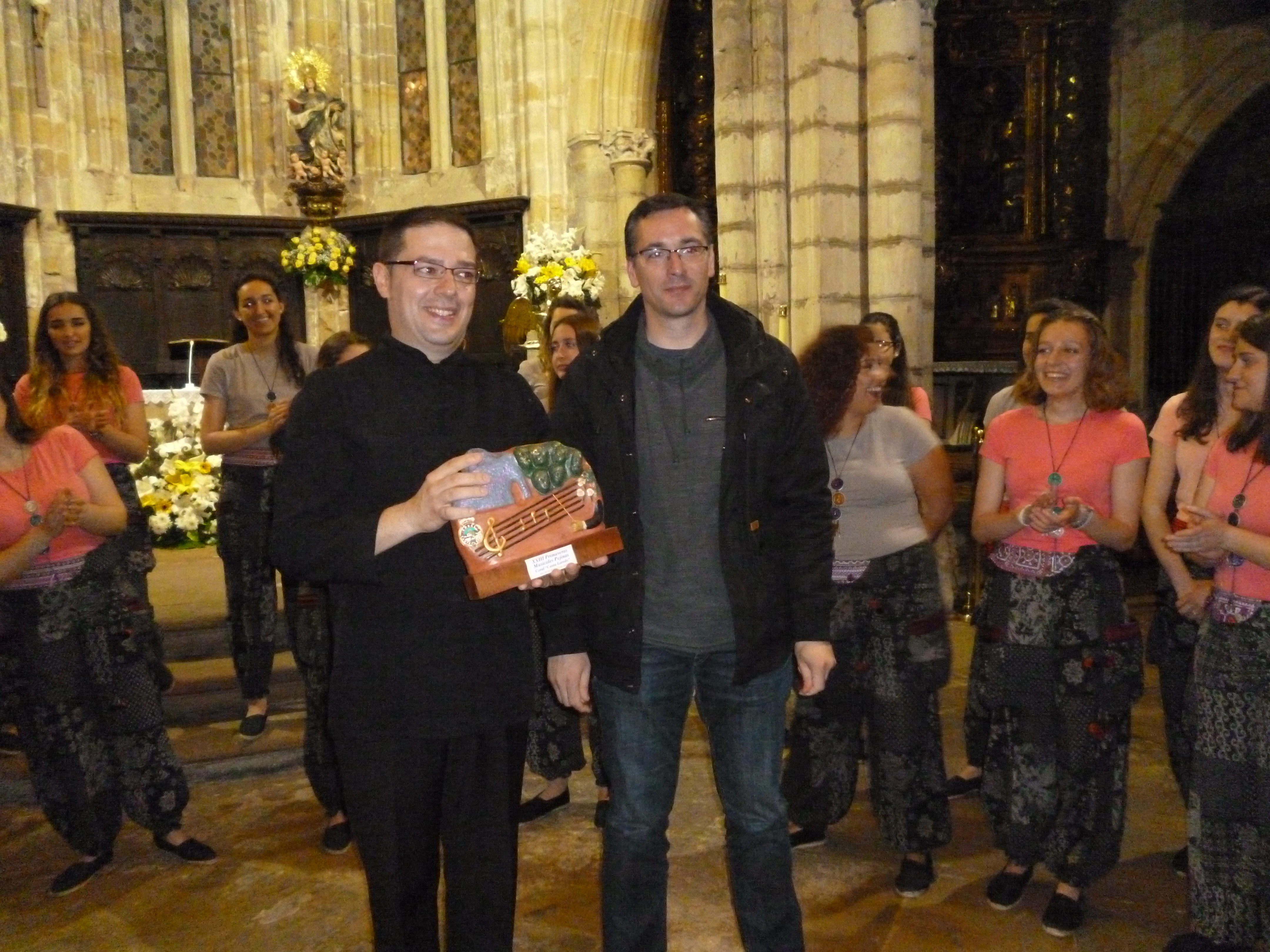 Juan Ramón López Visitación, Alcalde de Laredo, entregó el tradicional obsequio de las Primaveras Musicales Pejinasa Juan Antonio Jiménez Montesinos, director del Grupo Vocal “Antara Korai”.