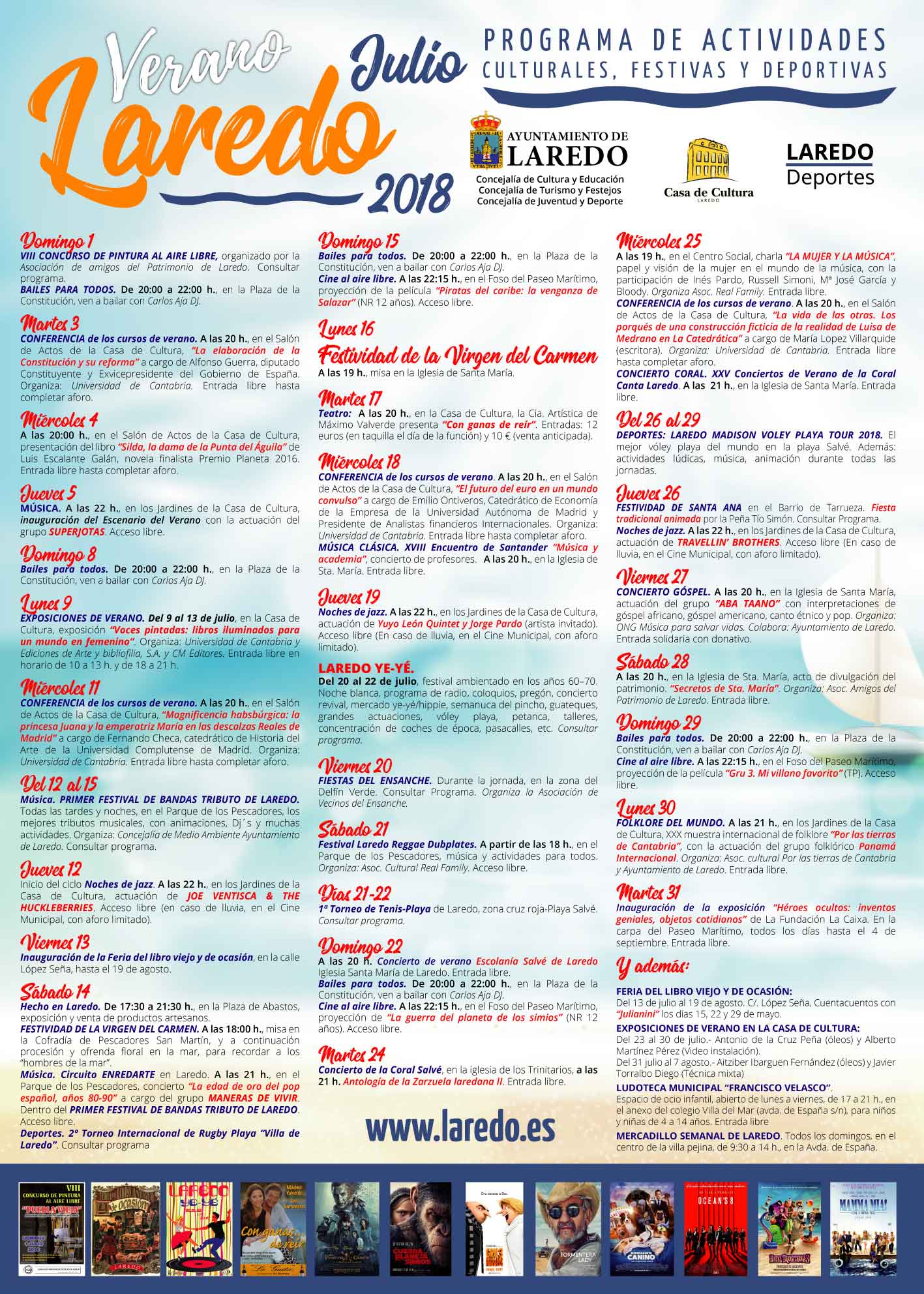 PROGRAMA DE ACTIVIDADES CULTURALES, FESTIVAS Y DEPORTIVAS PARA EL MES DE JULIO DE 2018 EN LAREDO