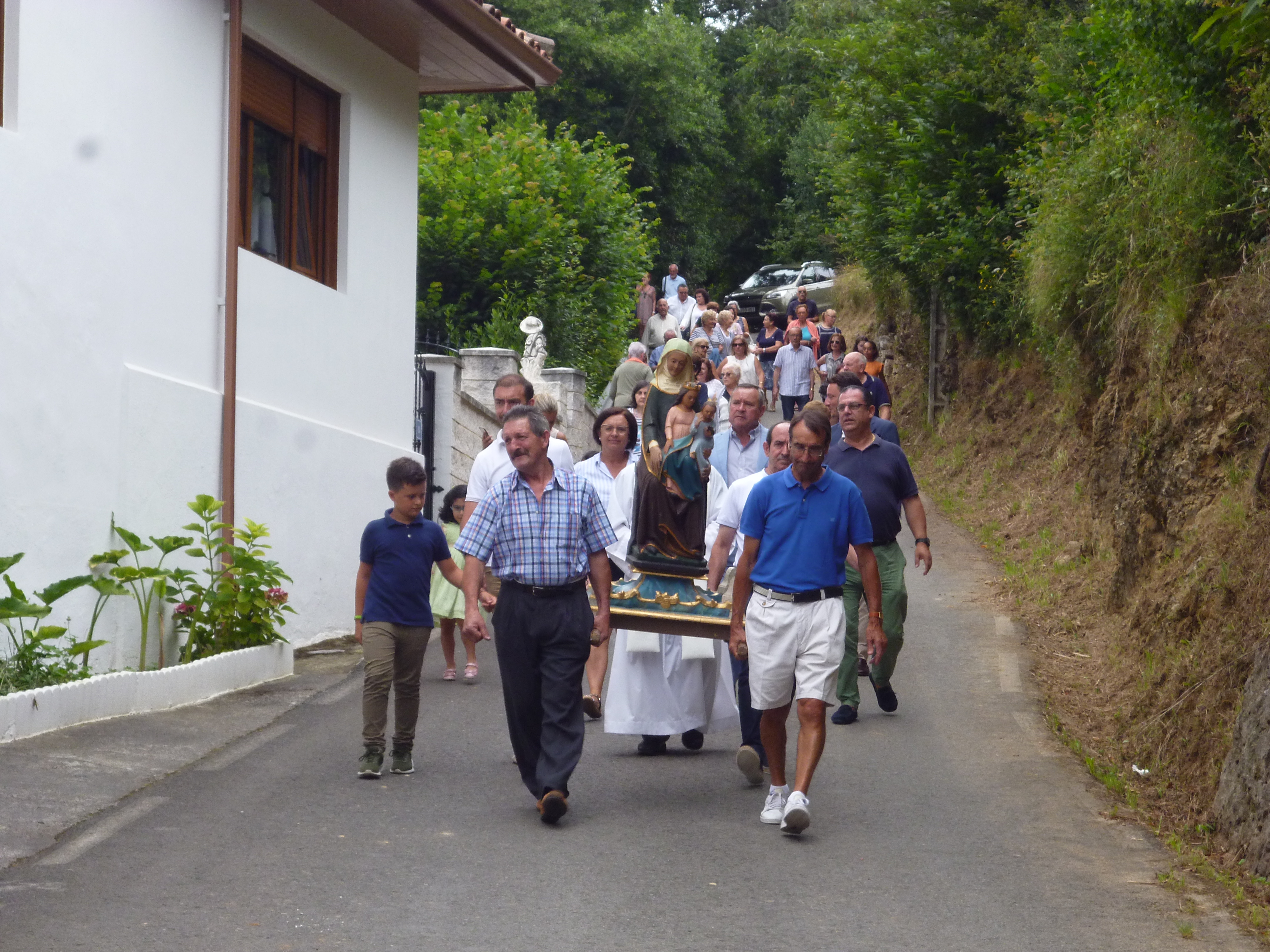 A las 12.30 h. dio comienzo la procesión con la imagen que representa a Santa Ana, su hija, la Virgen María y, su nieto, el Niño Jesús, portada en andas por vecinos del lugar, que partiendo de la ermita homónima recorrió todo el Barrio de Santa Ana para regresar a continuación al templo donde se celebró una misa.
