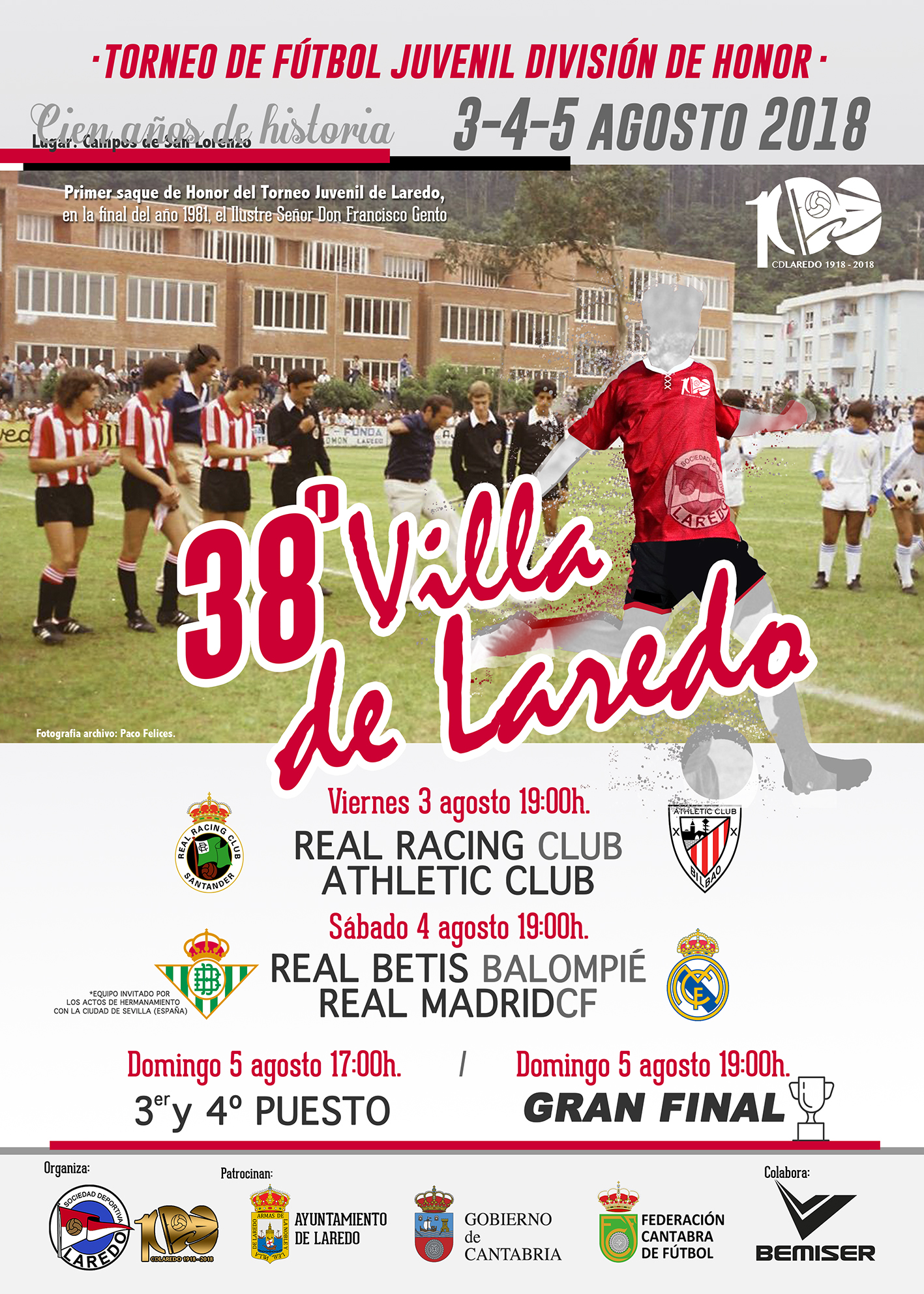 Mañana, viernes 3 de agosto, comienza el 38º Torneo de Fútbol Juvenil División de Honor Villa de Laredo que organiza el centenario Club Deportivo Laredo con el patrocinio del Ayuntamiento de Laredo, Gobierno de Cantabria, Federación Cántabra de Fútbol y, con la colaboración de Bemiser.