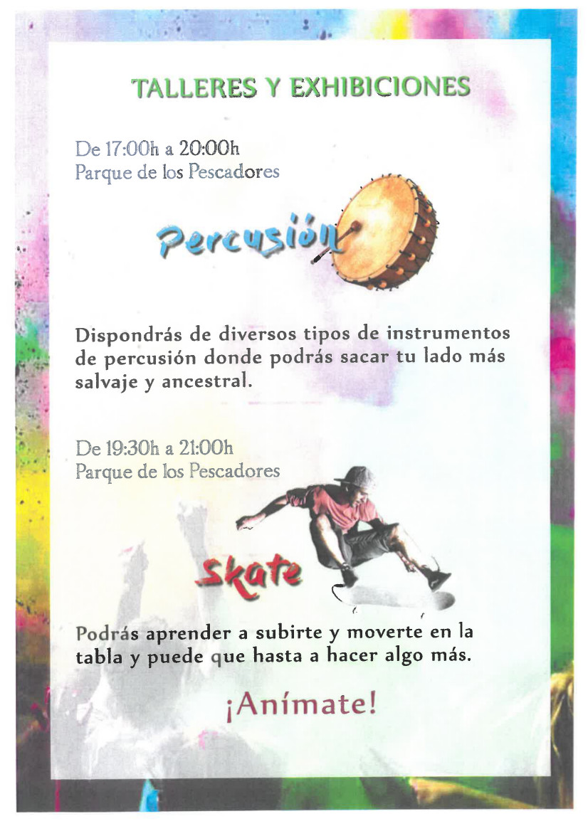 De 19.30 h. a 21 h. el Parque de los Pescadores serán también el escenario donde se podrá aprender a subirse y moverse en la tabla de skate.