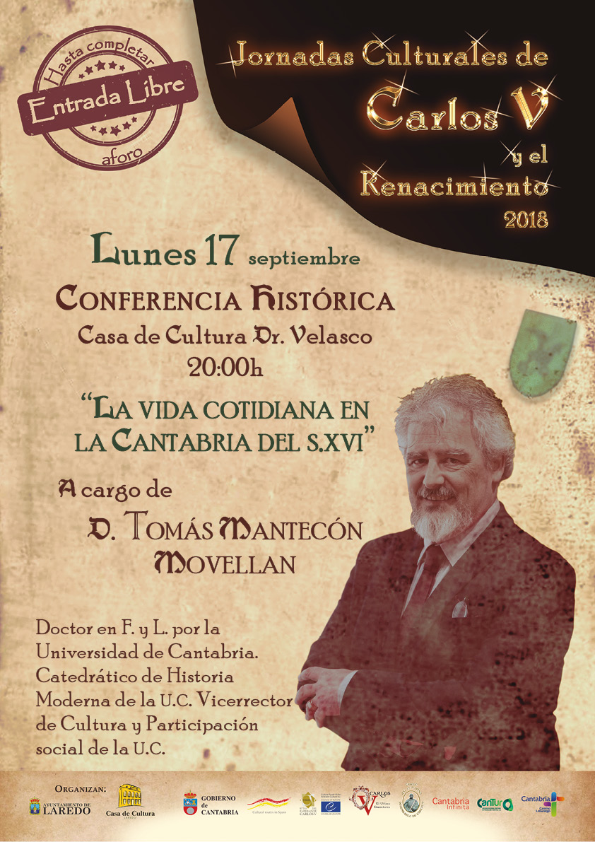En la tarde de hoy, lunes 17 de septiembre,a las 20 h. en la Casa de Cultura Dr. Velasco, tendrá lugar la conferencia histórica “ La vida cotidiana en la Cantabria del siglo XVI”, a cargo de D. TomásMantecón Movellán, Doctor en Filosofía y Letras por la Universidad de Cantabria. Catedrático de Historia Moderna de la UC; Vicerrector de Cultura y Participación Social de la UC.