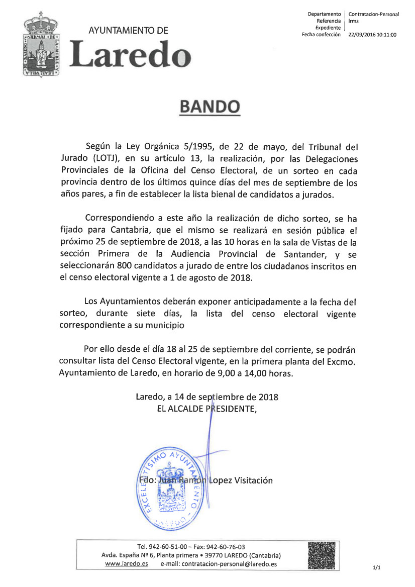 SORTEO DE 800 CANDIDATOS A JURADO DE ENTRE LOS CIUDADANOS INSCRITOS EN EL CENSO ELECTORAL VIGENT A 1 DE AGOSTO DE 2018 .