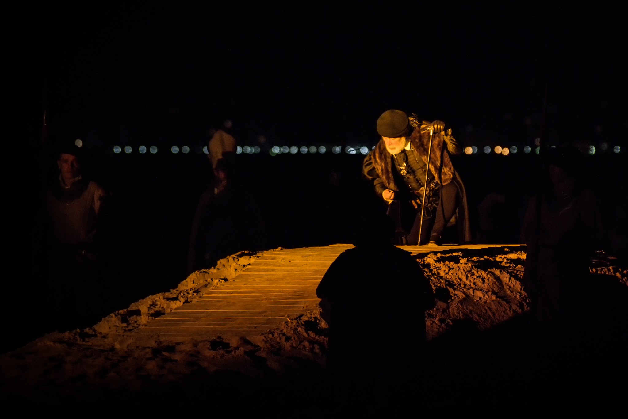 A continuación, será Tobías de Silva, personaje interpretado por Tobías Lobera, inspirado en los diferentes escribas que acompañaron al emperador en vida, el que relatará la emoción que sintieron quienes presenciaron en 1556 la llegada del hombre más poderoso de Europa a una villa marinera que formaba parte del Corregimiento de las Cuatro Villas de la Mar de Castilla y, cuyo puerto almenado con un gran tráfico comercial, pesquero, marítimo y defensivo era el mejor puerto de Castilla, de donde partían dos veces al año flotas de barcos hacia Flandes y, también a la “Carrera de Indias”, ya que el propio Emperador Carlos V en 1529 había habilitado al puerto laredano para comerciar con el continente americano. Añadiendo la faceta de haberse convertido en puerto de arribada y salida de personajes de la Corona.