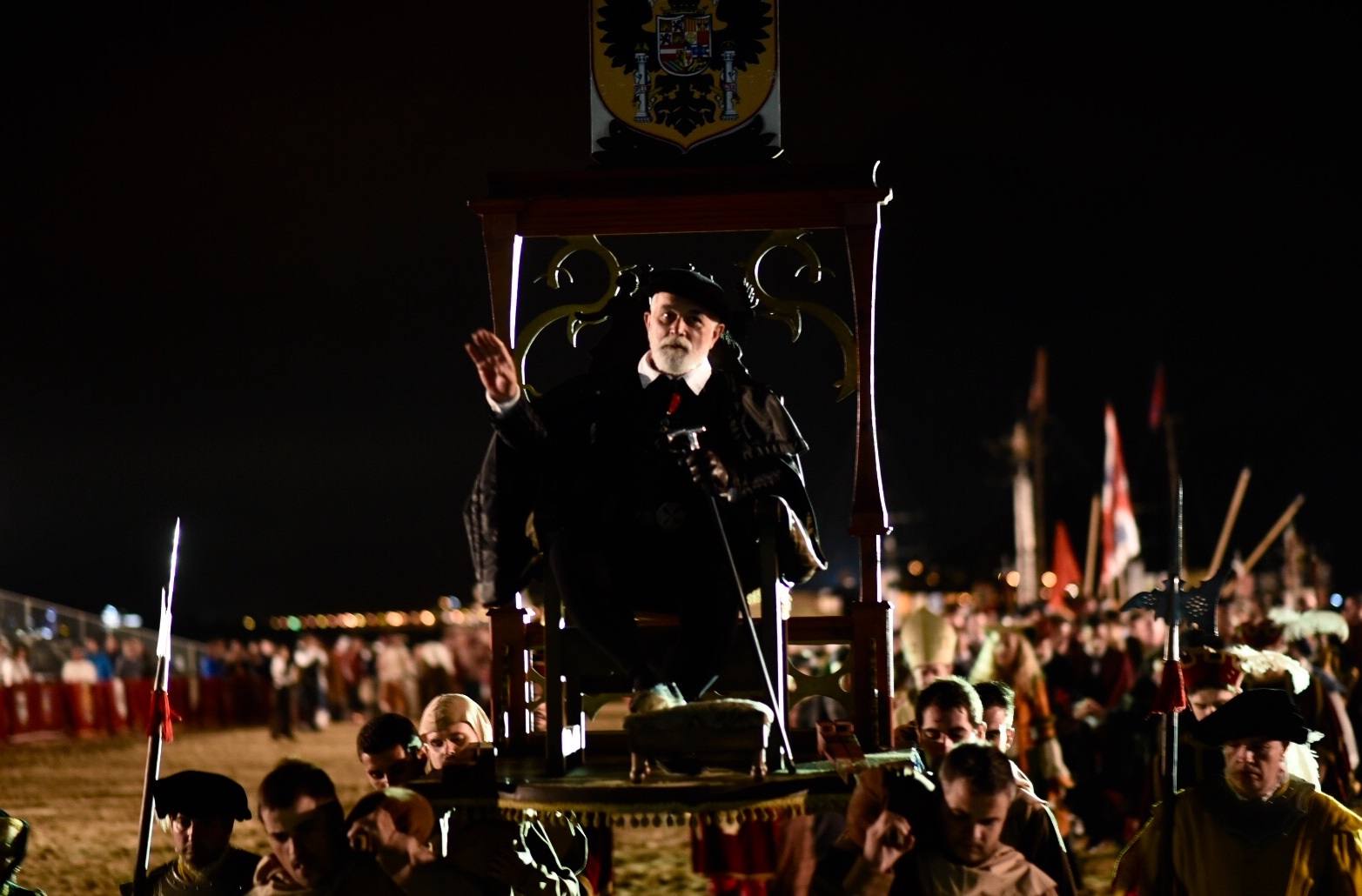Las gradas de El Palenque de la playa Salvé se encontraba abarrotado de un público que, a pesar de la lluvia, no se quiso perder la oportunidad de recibir al hombre más poderoso de su tiempo: el Rey y Emperador Carlos V.
