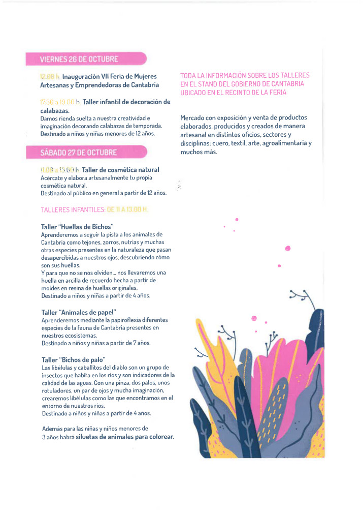 El viernes 26 y el sábado 27 de octubre , tendrá lugar en Renedo de Piélagos, Avda. Luis de la concha, 43-47, la celebración de la VII Feria de Mujeres Artesanas y Emprendedoras de Cantabria.