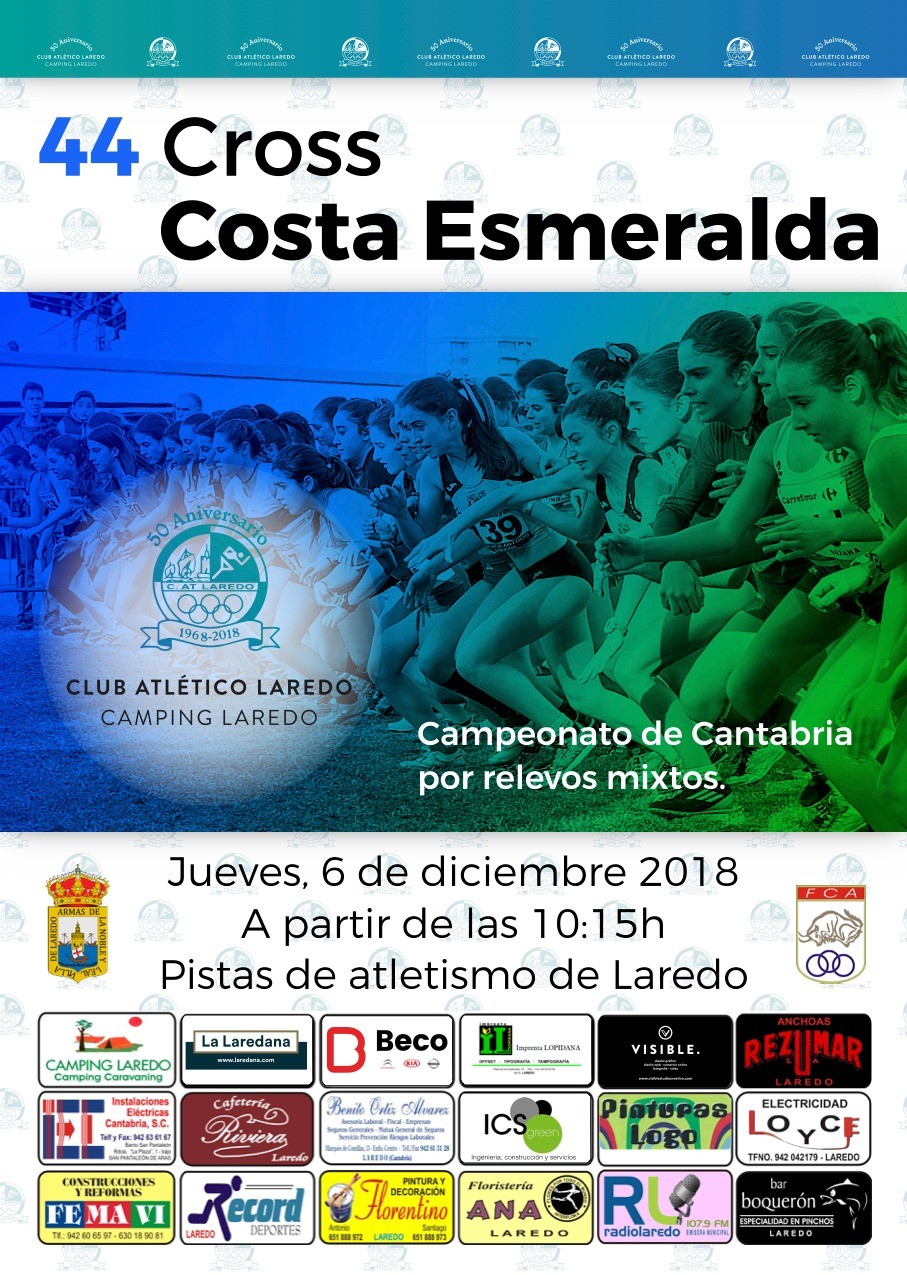El sábado, 6 de diciembre, Laredo volverá a ser protagonista de la celebración de la XLIV edición del Cross Costa Esmeralda y, I Campeonato de Cantabria de Relevos Mixtos, ambas pruebas organizadas por el Club Atlético Laredo-Camping Laredo, que este año conmemora su 50 Aniversario (1968-2018) y, patrocinadas por el Ayuntamiento de Laredo.
