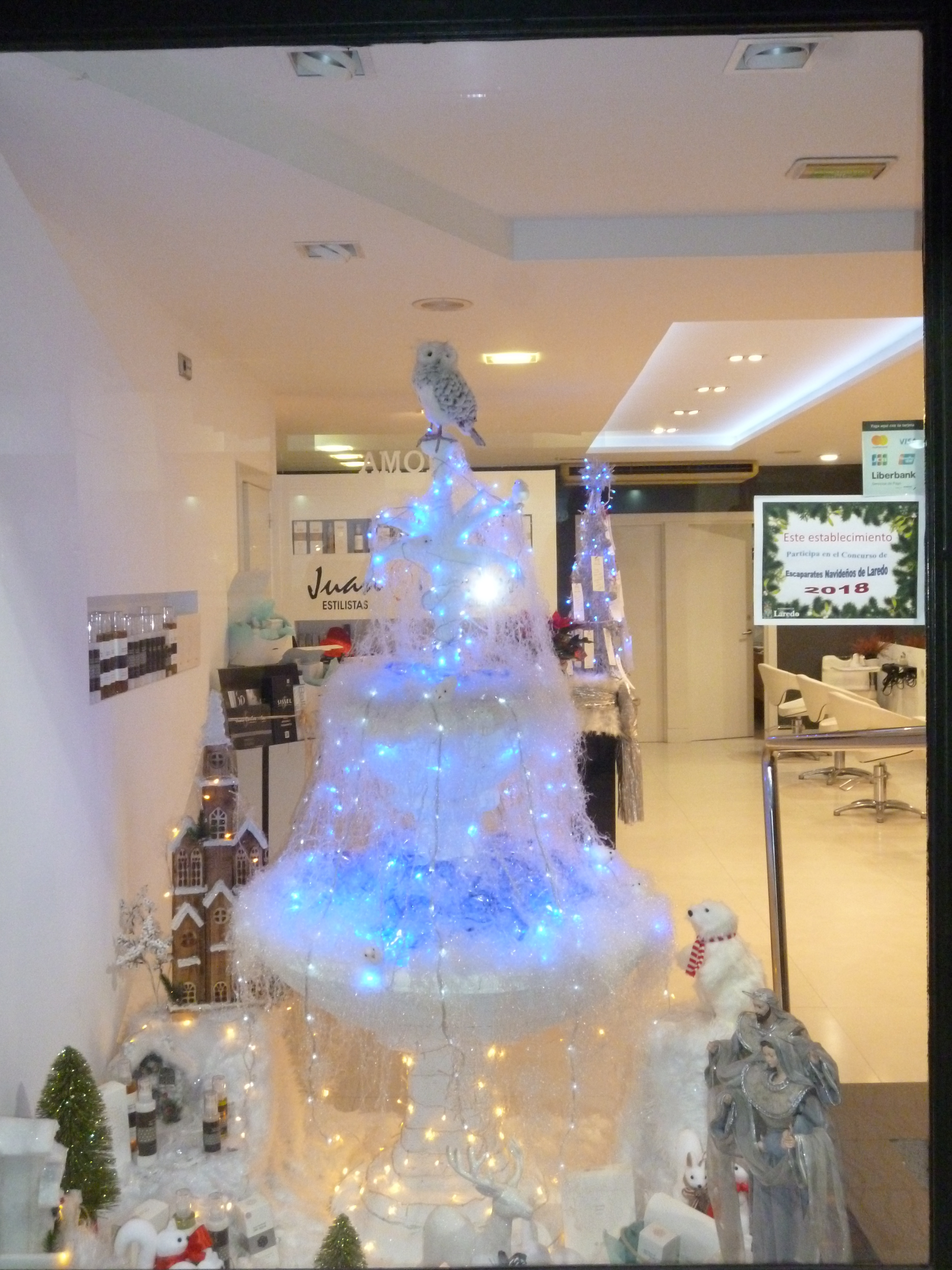 “La Fuente de la Belleza en Navidad” (7 puntos) , del establecimiento “Juan Carlos Estilistas Peluqueros” ha obtenido el tercer premio que otorga al ganador 250 € y trofeo del Ayuntamiento de Laredo.