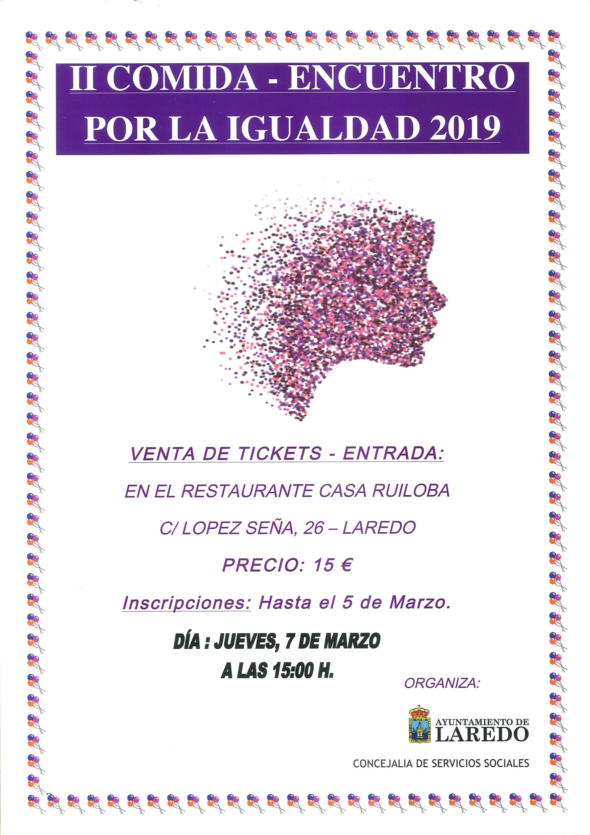 El Ayuntamiento de Laredo, a través de la Concejalía de Servicios Sociales, ha organizado la II Comida-Encuentro por la Igualdad 2019, que tendrá lugar el 7 de marzo próximo, a las 15 h., en un establecimiento hostelero de la villa.