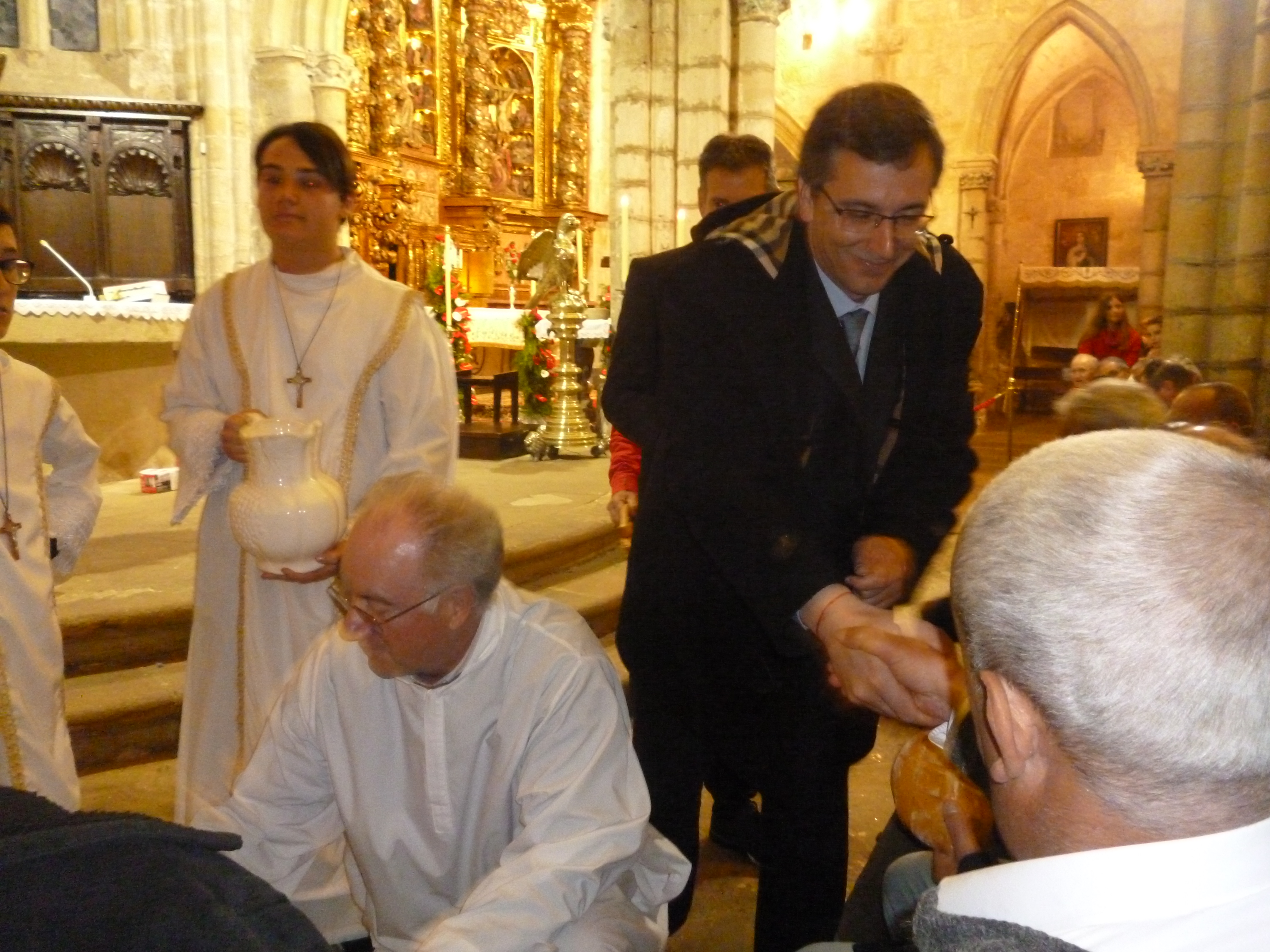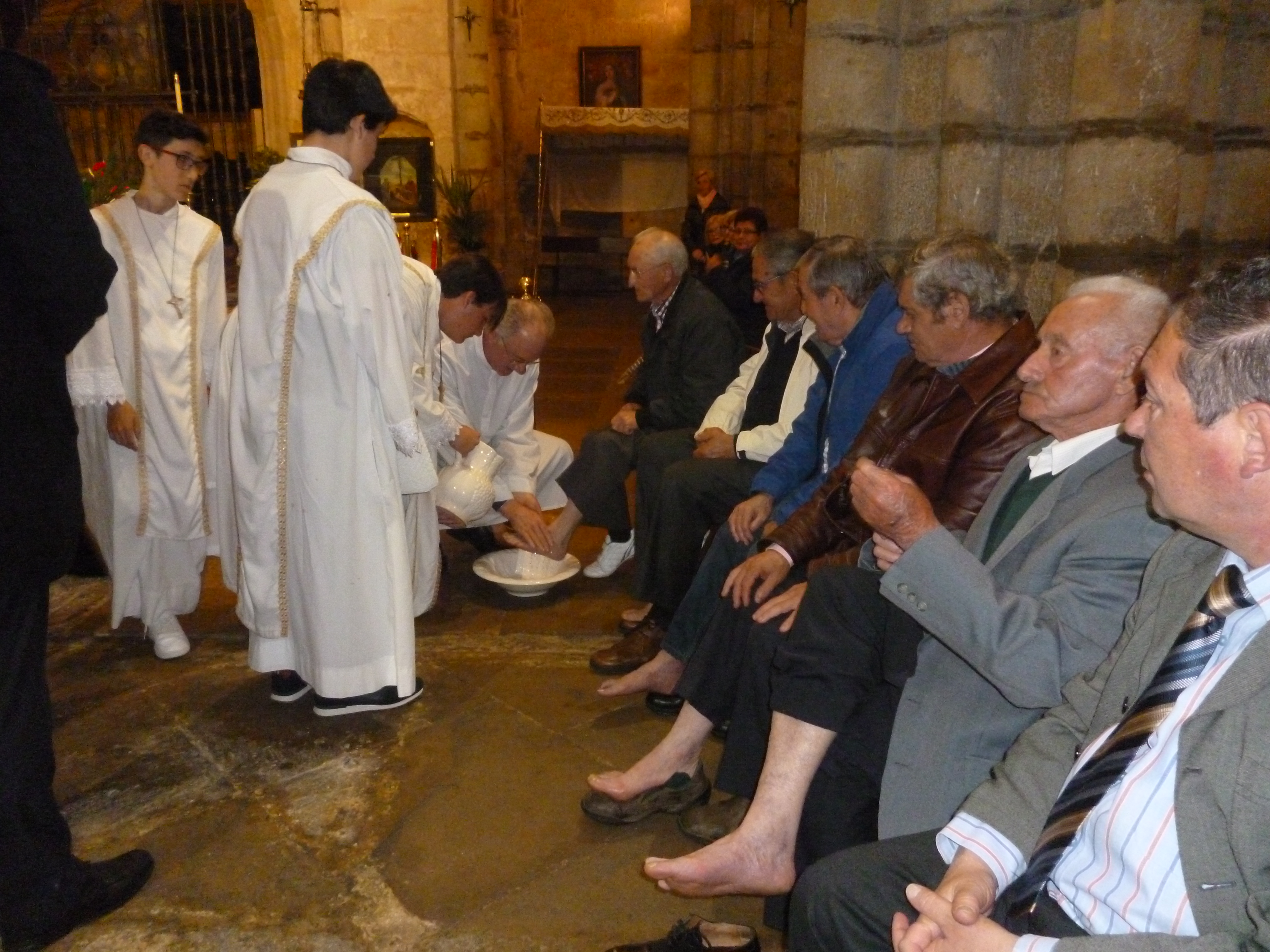 Con la asistencia del Alcalde de Laredo, Juan Ramón López Visitación, el Patrón Mayor de la Cofradía de Pescadores San Martín de Laredo, César Nates Fernández, el jefe destacamento de Tráfico de Laredo de la Guardia Civil, Héctor Manuel Fuertes Miguelez, miembros de la Corporación Municipal del Ayuntamiento de Laredo y, del Cuerpo de la Guardia Civil, ha dado comienzo a las ocho de la tarde en la iglesia gótica Santa María de la Asunción de Laredo, enclavada en lo alto de la Puebla Vieja pejina, la celebración de la Cena del Señor, con la representación del Lavatorio de los Pies.
