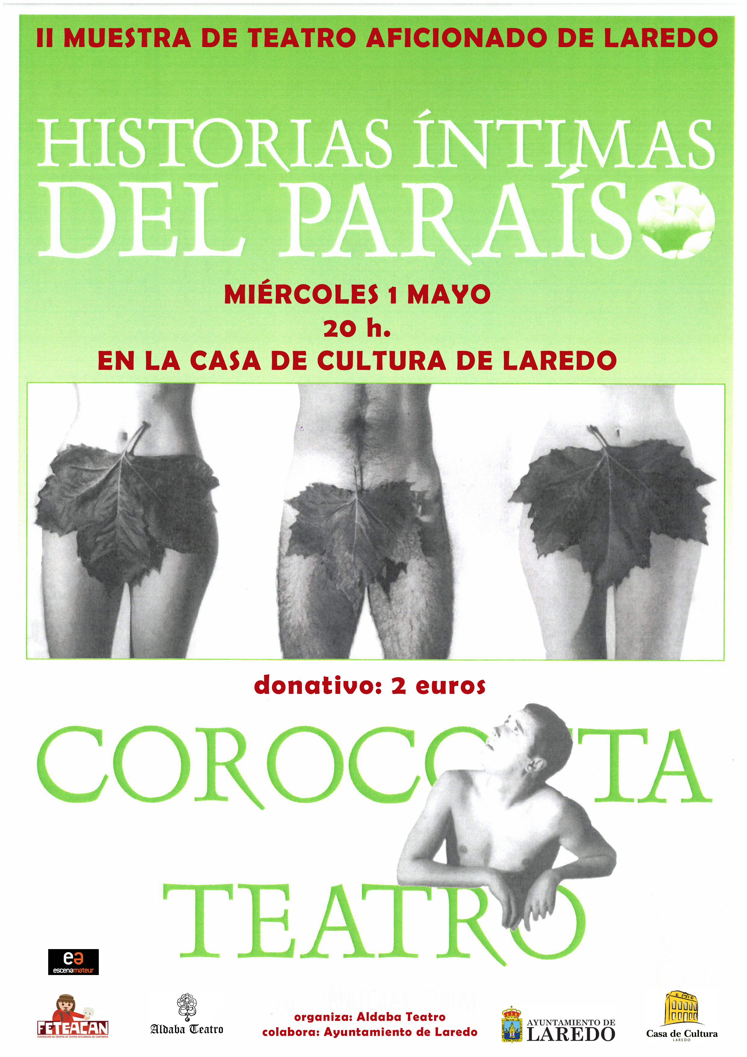 Mañana, miércoles 1 de mayo, a las 20 h., en el Salón de Actos de la Casa de Cultura Dr. Velasco, de Laredo, tendrá lugar la tercera representación teatral de la II Muestra de Teatro Aficionado de Laredo, que organizada el Grupo Aldaba Teatro, de Laredo, con la colaboración del Ayuntamiento de Laredo.