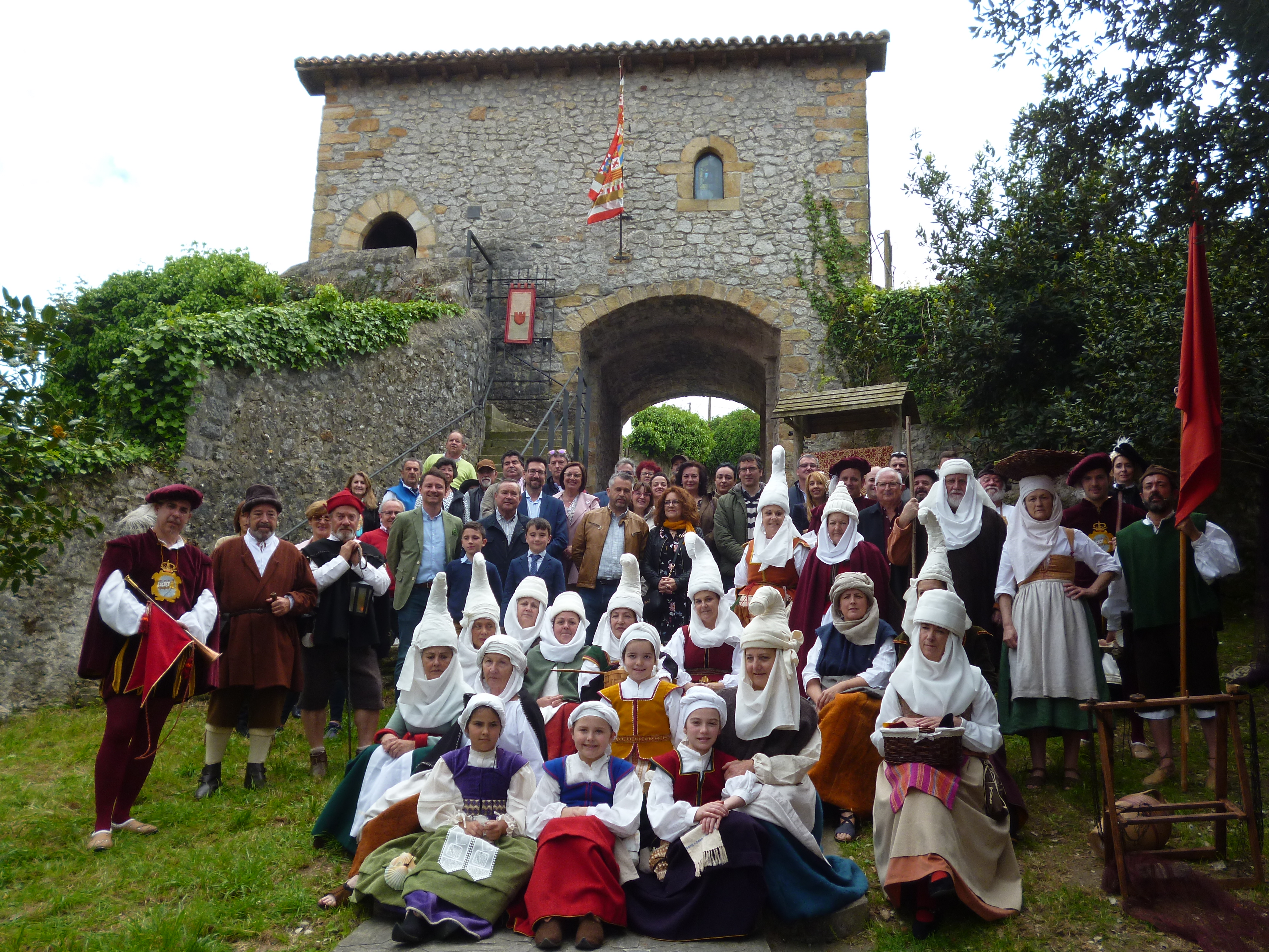 A las 12 h. desde la Plaza de la Constitución la comitiva ha realizado una visita guiada a la casa-torre del Condestable de Castilla, situada en lo alto de la Rúa San Marcial, donde se alojaron la Reina Isabel I de Castilla con sus hijos en 1496, con motivo del viaje por mar de su hija la Infanta Juana a Flandes para contraer matrimonio con Felipe de Habsburgo; la Infanta Catalina en 1501 también en viaje por mar para matrimoniar con el heredero del trono inglés, Arturo, Príncipe de Gales; en 1556 el Rey y Emperador Carlos V y, en 1559 su hijo, el Rey Felipe II. La siguiente parada ha sido la iglesia Santa María de la Asunción, donde se ha visitado el Retablo de la Virgen de Belén, de la segunda mitad del siglo XV y, después descendiendo por la rúa Santa María la comitiva se ha adentrado en El Arrabal de la Mar por la rúa Espíritu Santo hasta la Puerta de San Lorenzo donde ha tenido lugar la entrega del distintivo de la RCCV.