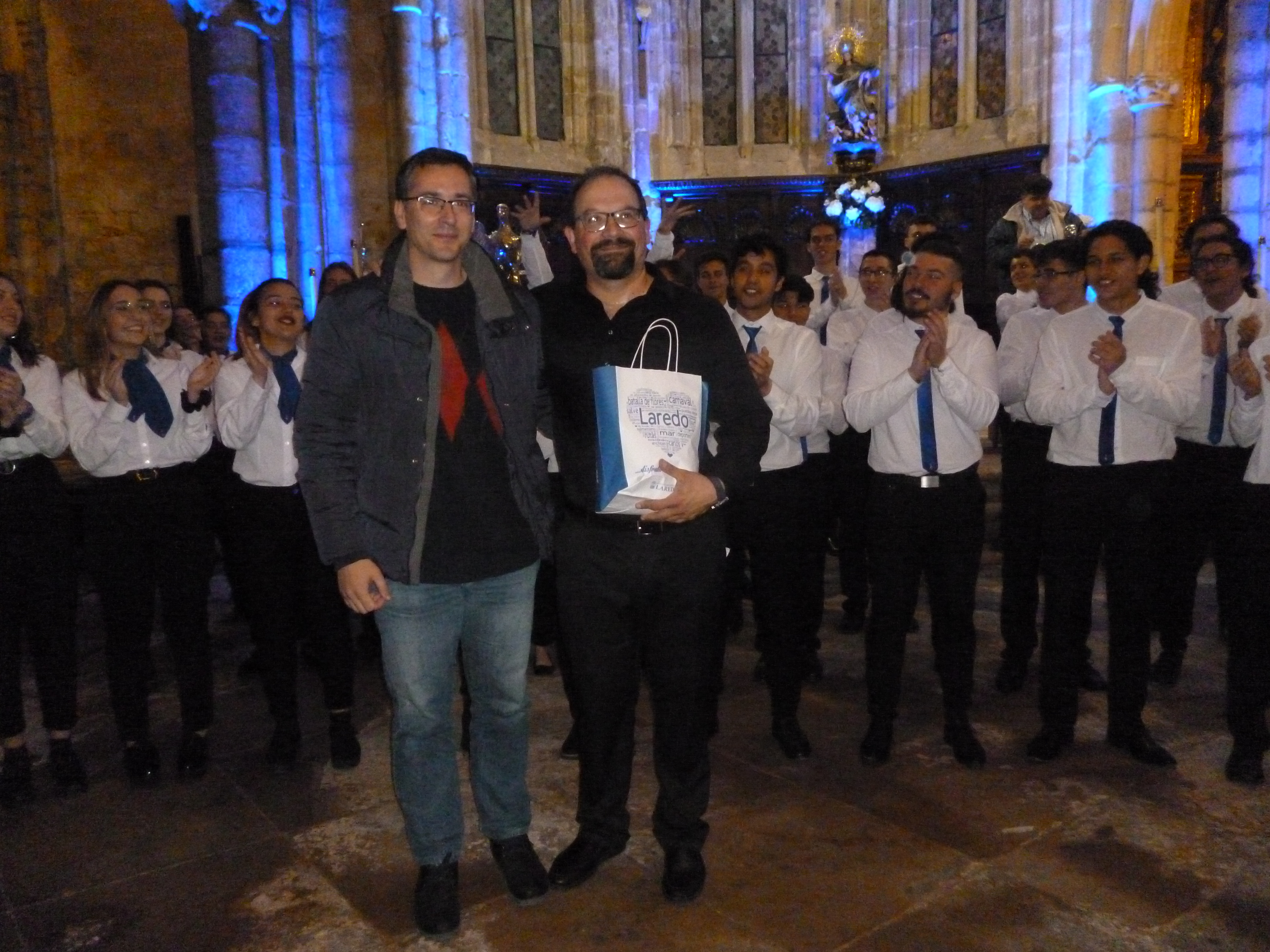 A la finalización del concierto el Alcalde de Laredo entregó un obsequio al Director de “Voces para la Convivencia” como recuerdo de su participación en el Festival Primaveras Musicales Pejinas. Y la pianista , Marta Martínez fue obsequiada con un ramo de flores entregado por una integrante de la Coral Canta Laredo.