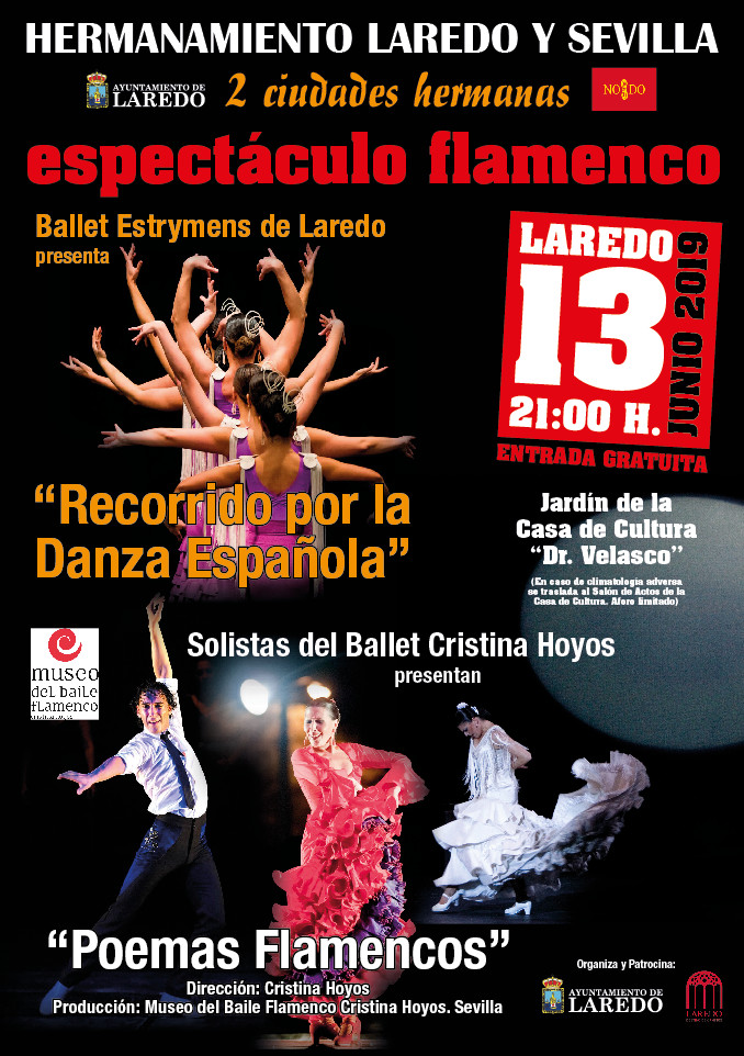 LOS SOLISTAS DEL BALLET CRISTINA HOYOS, DE SEVILLA Y EL BALLET ESTRYMENS, DE LAREDO, OFRECERÁN CONJUNTAMENTE EL ESPECTÁCULO FLAMENCO “SEVILLA Y LAREDO, DOS CIUDADES HERMANAS” EN LAREDO HOY 13 DE JUNIO DE 2019.