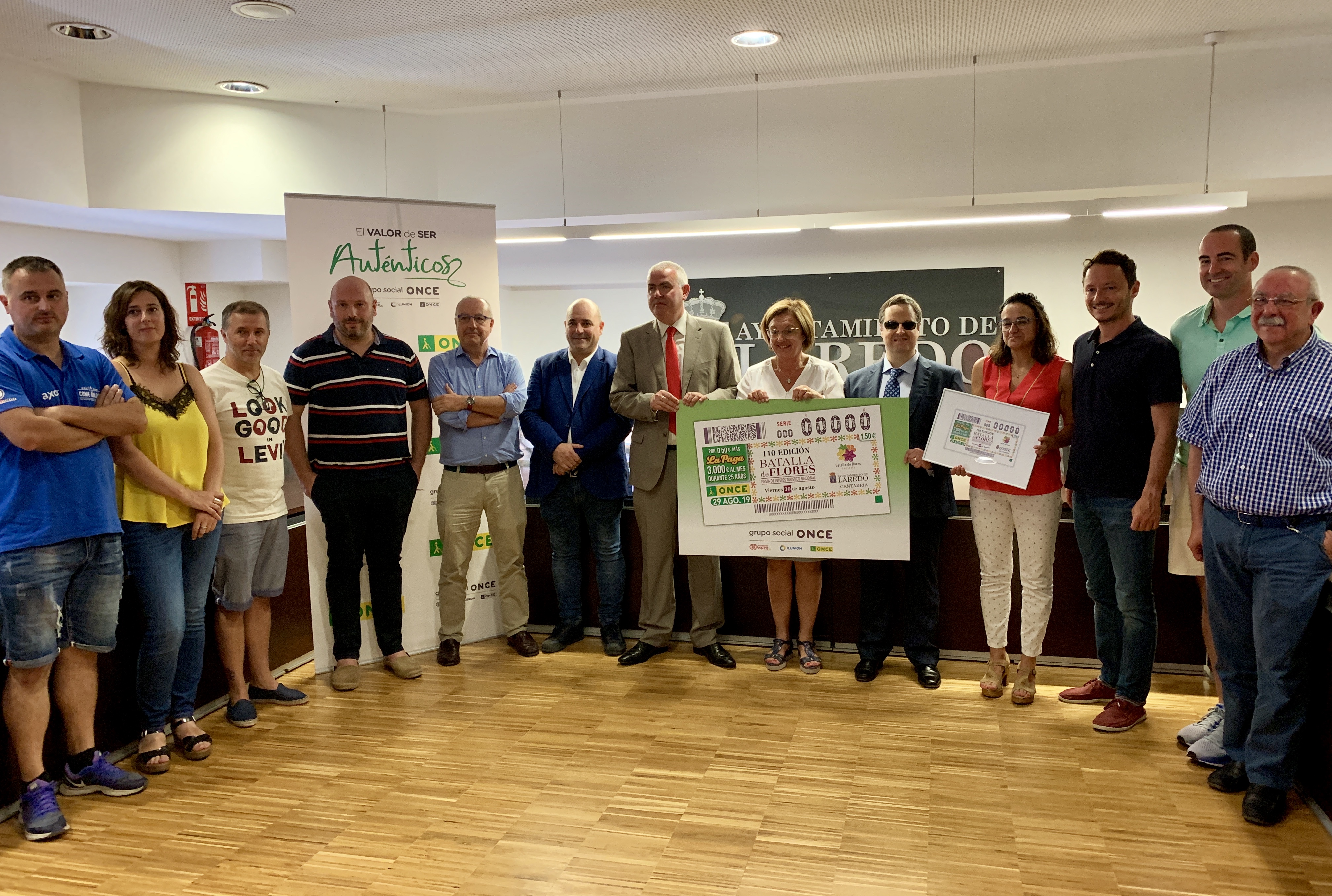 La Batalla de Flores, que se celebra el 30 de agosto en Laredo, protagoniza el cupón de la ONCE del jueves, 29 de agosto. El jueves 22 de agosto, a la una del mediodía, se ha presentado en el salón de plenos del Ayuntamiento de Laredo la imagen que portarán los boletos de la ONCE. Cinco millones y medio de cupones que difundirán esta fiesta que reúne a miles de personas. La alcaldesa de Laredo, Rosario Losa, el presidente del Consejo Territorial, Sergio Olavarría López y el responsable del Dpto. de Juego de la ONCE, Miguel Morado Fernández, han presentado el cupón ante diferentes miembros de la corporación municipal, los asistentes al acto y los medios de comunicación.