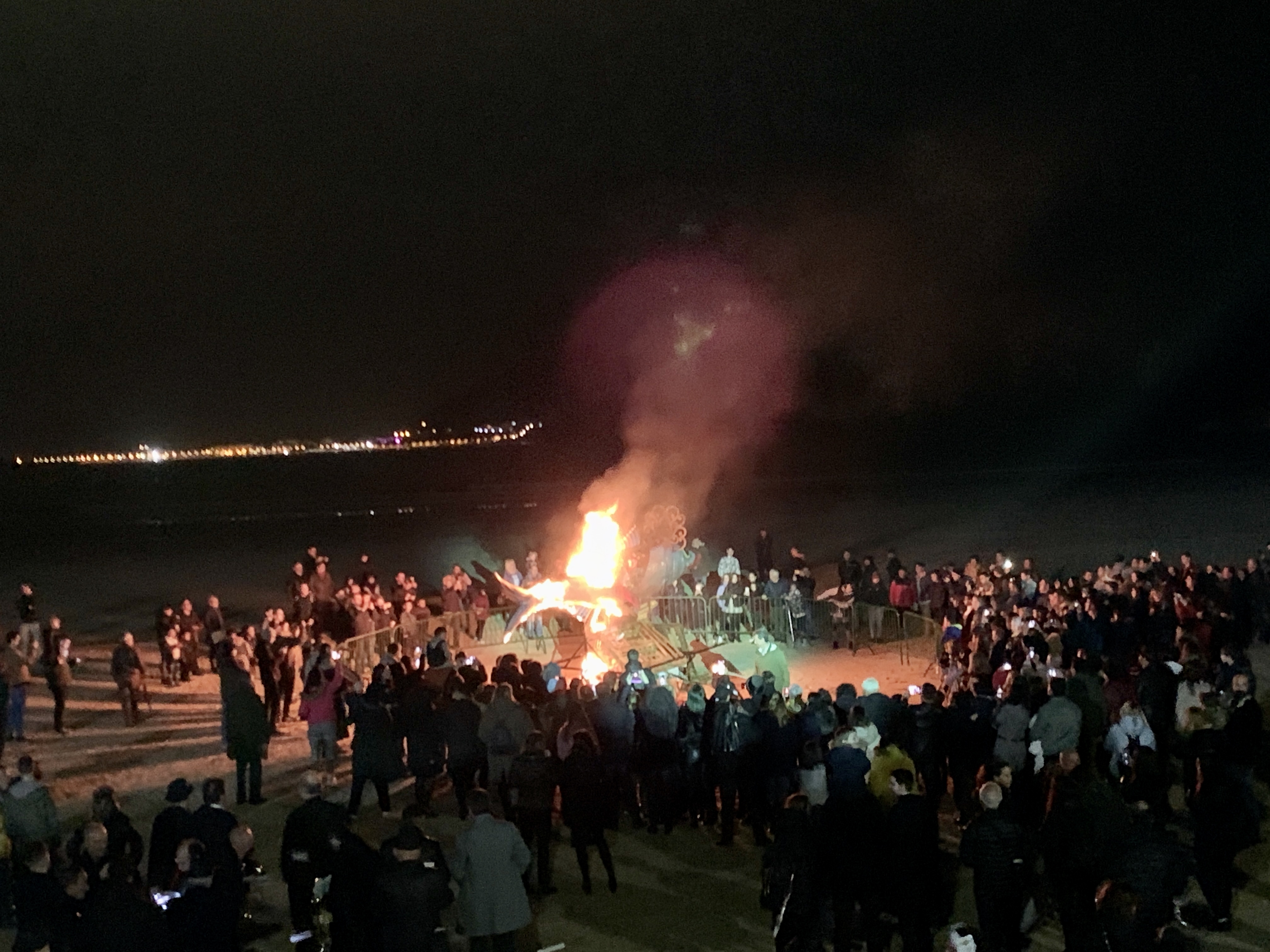 La representación de Aldaba teatro en la Plaza de la Constitución dio paso a la tradicional quema de la sardina en la Playa de la Salvé ante la atenta mirada de los vecinos del municipio 01 de Marzo de 2020