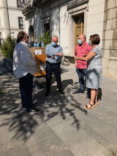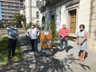 La alcaldesa del ayuntamiento de Laredo, Rosario Losa, acompañada del primer y tercer tenientes de alcalde Pedro Diego y Juan José Revuelta, respectivamente, recibieron del Club Deportivo Laredo, representado por su presidente, José Miguel San Román un total de 2.000 mascarillas faciales desechables y 15 botes de hidrogel destinados a los Servicios Sociales municipales, para atender las necesidades de vecinos de nuestra localidad que se hallen en situación de necesidad, riesgo o exclusión social.