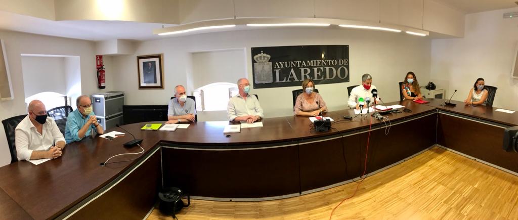 El proyecto que hará realidad un nuevo tejado para la Iglesia de Santa María se ha presentado hoy en el salón de Plenos del Ayuntamiento de Laredo. El equipo de gobierno local ha entregado a la Consejería de Cultura la memoria que expone las actuaciones que se realizarán para dotar de una cubierta remodelada a la Iglesia de Santa María. Han participado del evento la alcaldesa de Laredo, Charo Losa; el vicepresidente de Cantabria y consejero de Cultura, Pablo Zuloaga; la directora general de Patrimonio, Zoraida Hijosa; el responsable de la redacción del proyecto, Luis Alberto Alonso; el párroco, Juan Luis Cerro; el concejal de Patrimonio y Puebla Vieja, Antonio Bocanegra y los tenientes de alcalde, Pedro Diego y Carmen García.