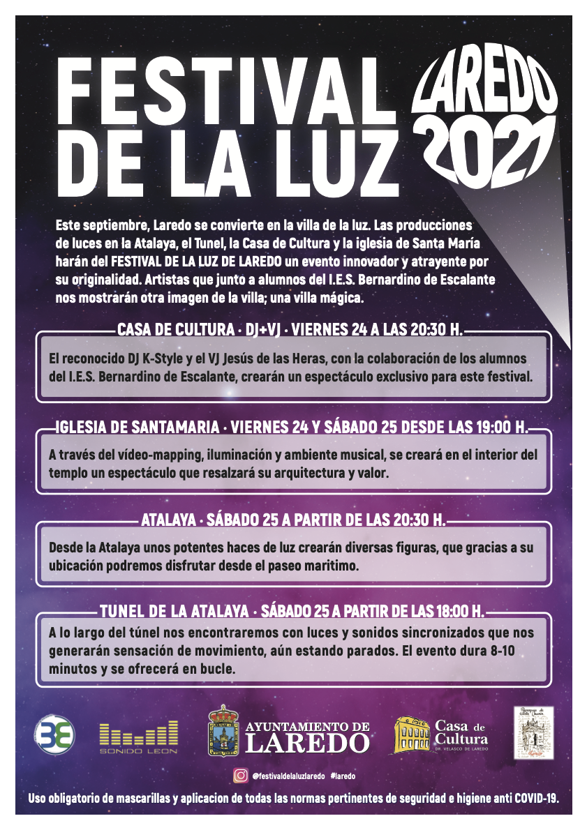 La primera edición del Festival de la luz se desarrollará entre el 21 y el 25 de septiembre, organizado por el Ayuntamiento de Laredo, según ha anunciado la Concejala de Cultura y Educación del Ayuntamiento de Laredo, Izaskun Sarabia.