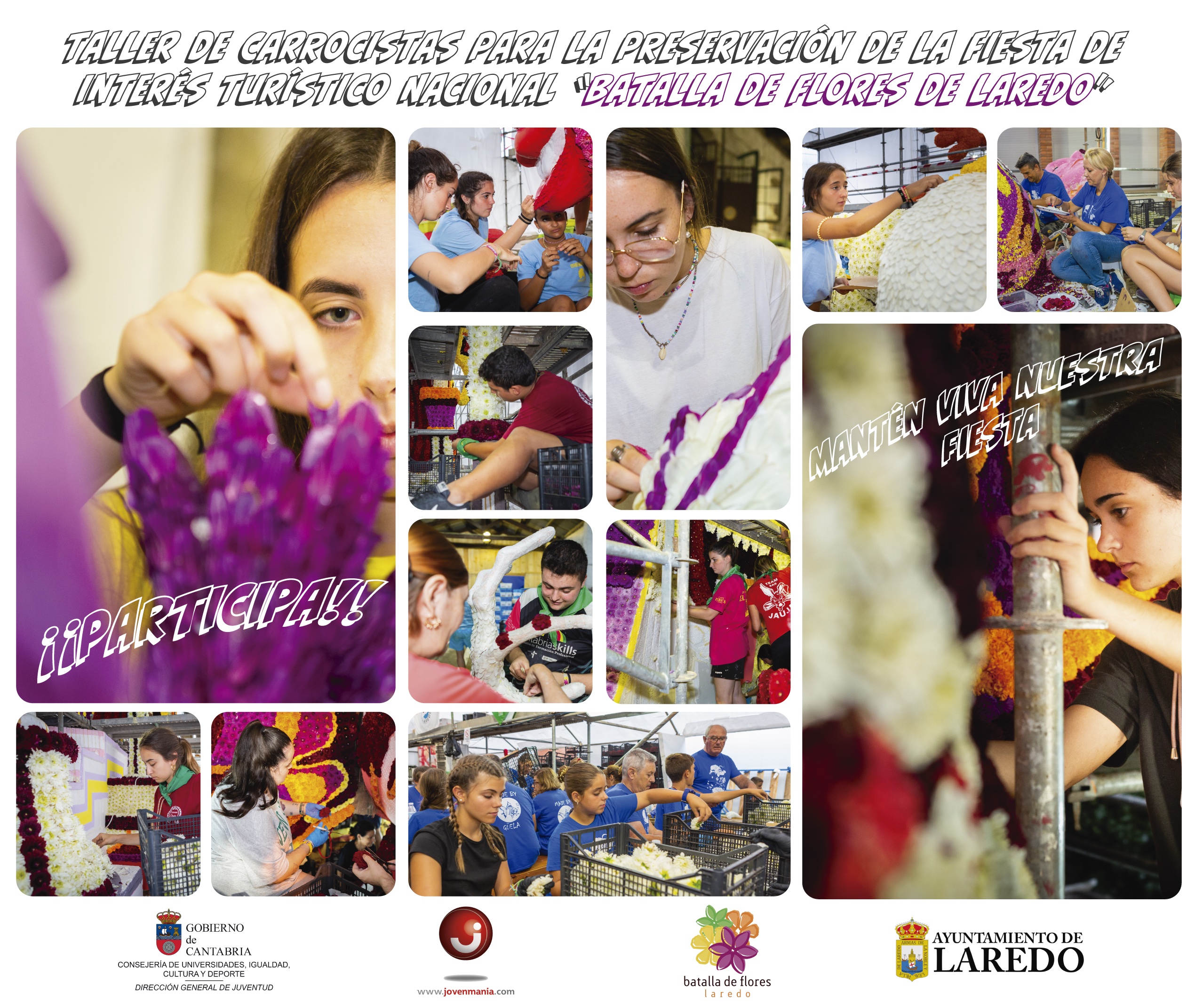 El proyecto educativo, promovido desde el área de Festejos del Ayuntamiento de Laredo en colaboración con la Dirección General de Juventud de la Consejería de Cultura del Gobierno de Cantabria, se denomina Taller de Carrocistas para la preservación de la Fiesta de Interés Turístico Nacional “Batalla de Flores de Laredo”. La iniciativa tiene la finalidad de potenciar la Batalla de Flores, enseñando a los jóvenes que lo deseen a disfrutar de la elaboración de las carrozas y formando nuevas generaciones de carrocistas que aporten en el futuro su granito de arena al festejo.