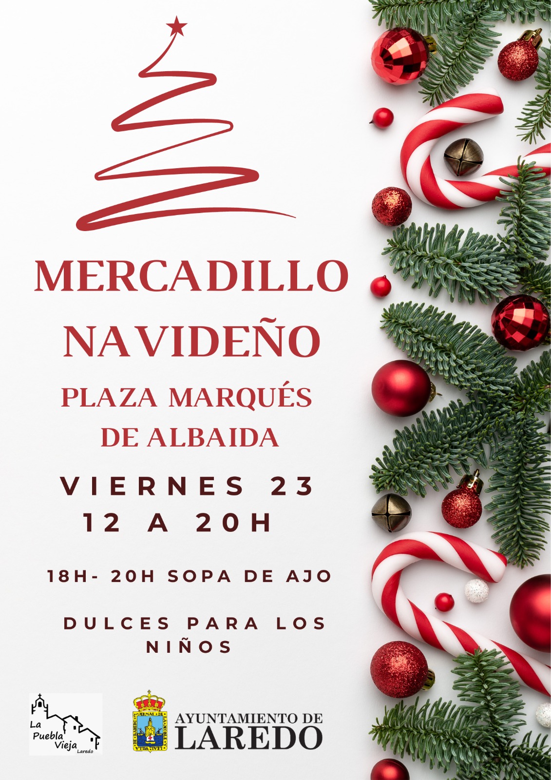 El Ayuntamiento de Laredo pone en marcha dos primeras acciones piloto concernientes a las medidas contenidas en el estudio del Plan Repuebla. De esta manera, el próximo viernes 23 de diciembre, en horario de 12:00 a 20:00 horas, tendrá lugar el Mercadillo Navideño en la plaza Marqués de Albaida. Además de los productos que se comercialicen en el mercadillo, se repartirán gratuitamente dulces a los más pequeños y quienes lo deseen podrán disfrutar de la sopa de ajo que se ofrecerá de 18 a 20 horas.
